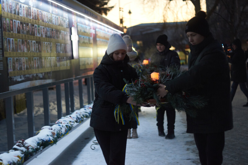 Різдвяну свічу пам’яті молодь піднесла до пам’ятного фотостенду “Герої Небесної Сотні - Загинули за єдність України”, тим самим вшанувавши українських Героїв, які поклали своє життя за нашу незалежність.