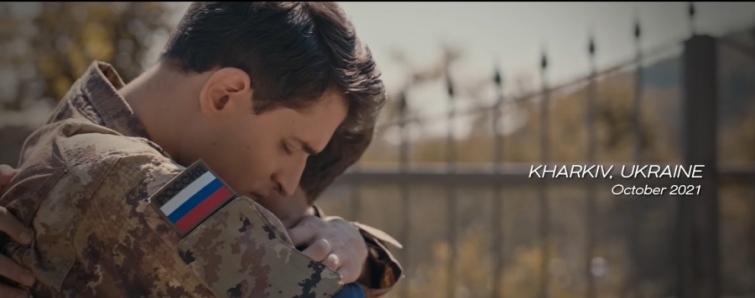 Зокрема, у фільмі є кадр, де росіянин у формі з триколором обіймається з українцем – ці події нібито відбуваються у жовтні 2021 року в Харкові.