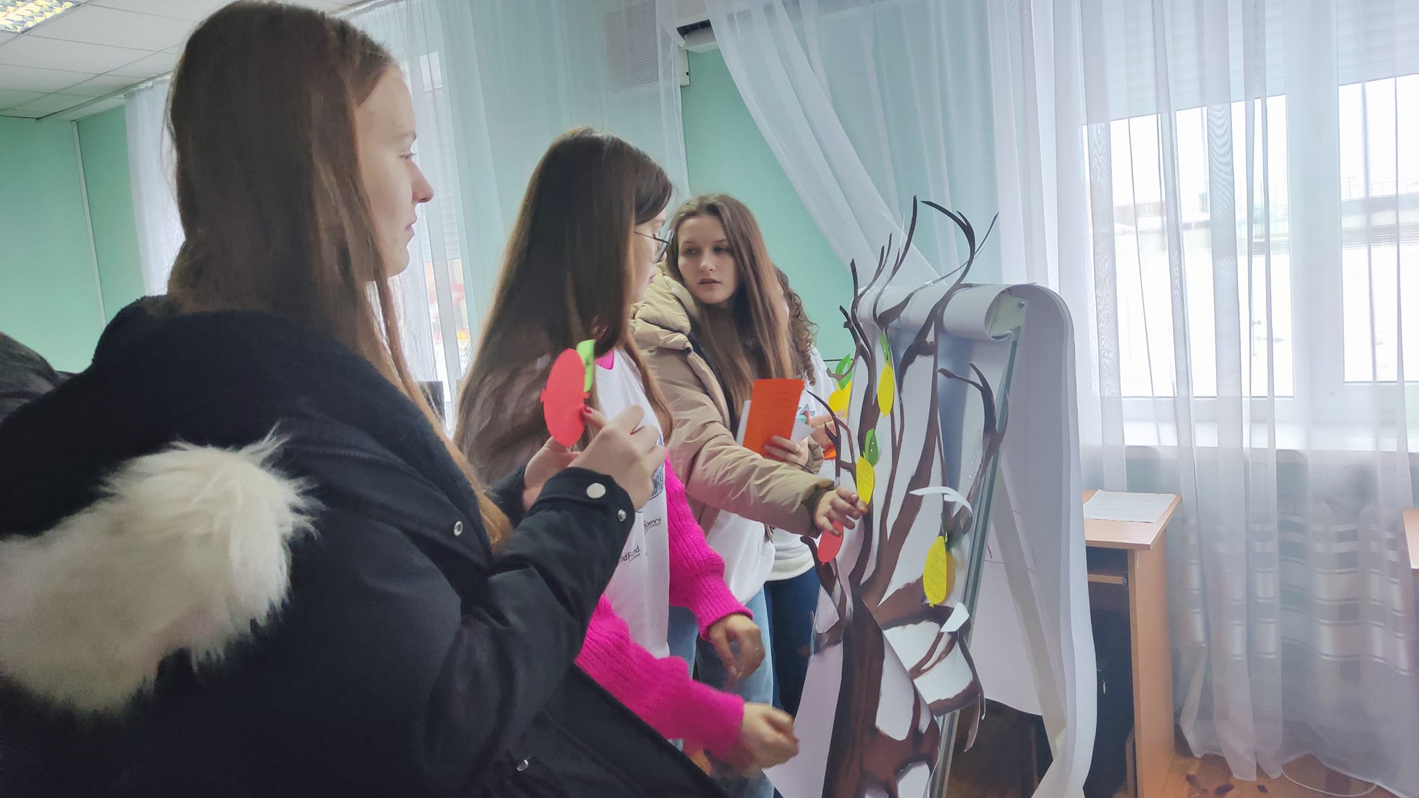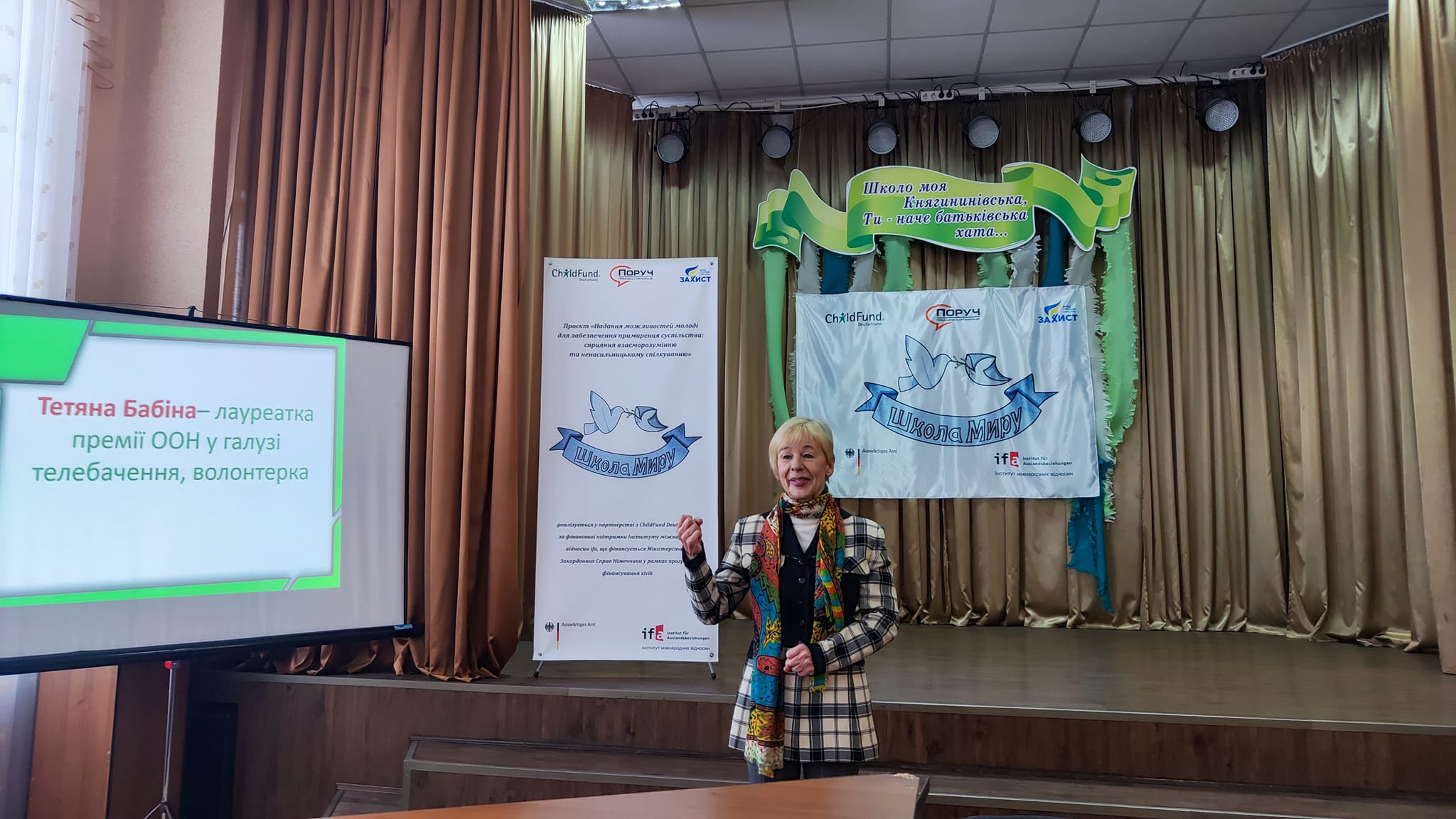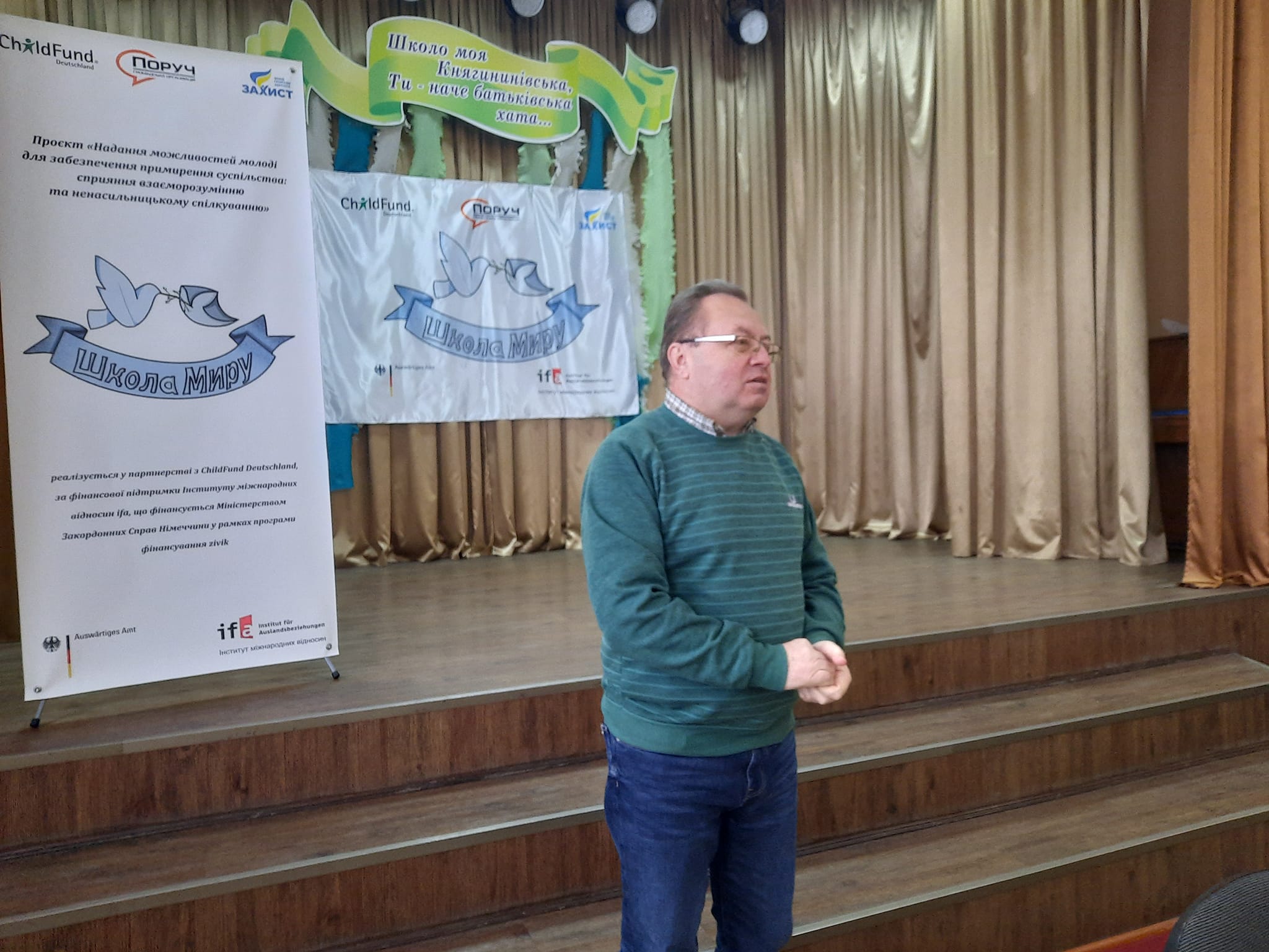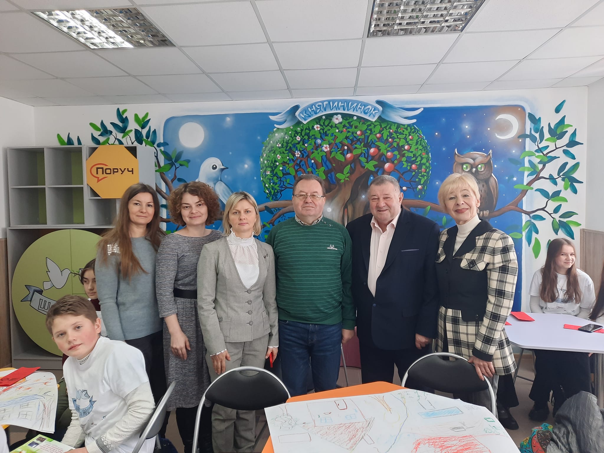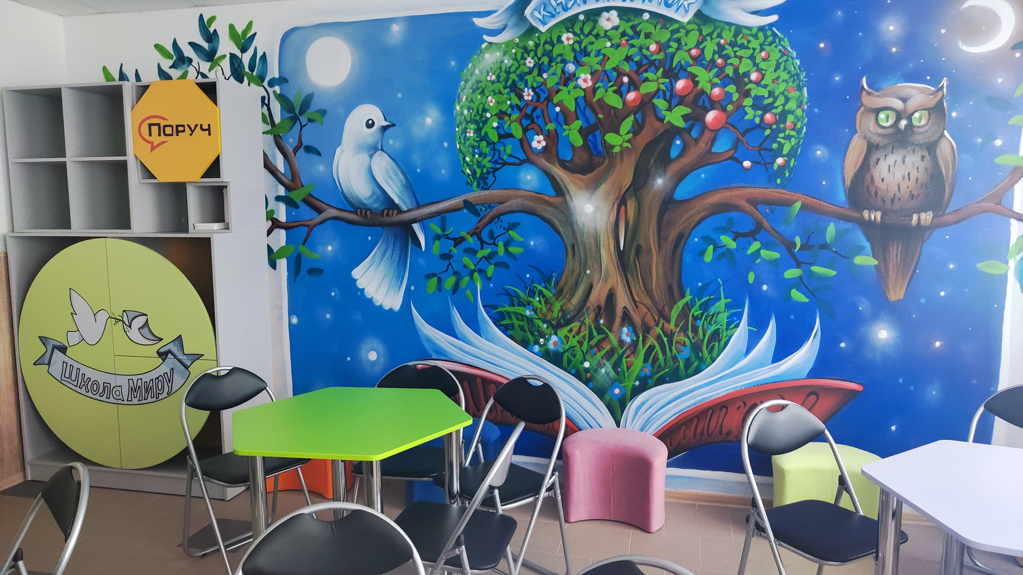 Сприяти школам у розвитку миробудування та медіації шляхом поширення культури мирного вирішення конфліктів у дітей та молоді – така мета проєкту, який реалізовує Всеукраїнська громадська організація «Поруч». У рамках проєкту за кошти донорів учні спільно з вчителями мали змогу облаштувати «клас миру», отримати матеріали для його оздоблення, меблі, техніку, наочні та методичні матеріали.