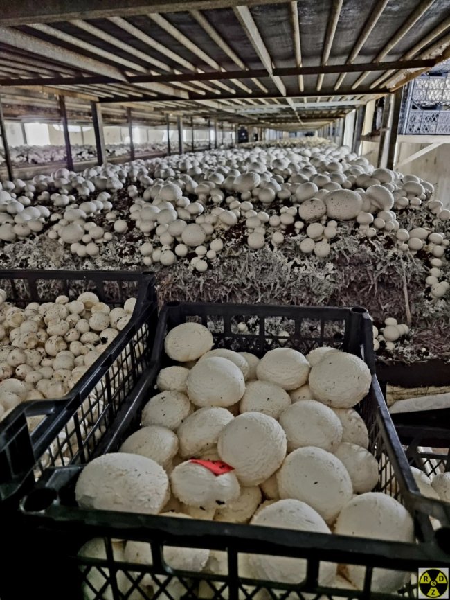Для вирощування грибів використовують торф, солому і міцелій – пророщені зерна пшениці. Це все вантажиться в камеру і акуратно розкладається по поличках. Через деякий, час при дотриванні за правильної температури та вологості з’являються печериці. Між дрібним та дорослим грибом проходить менше 24 години.