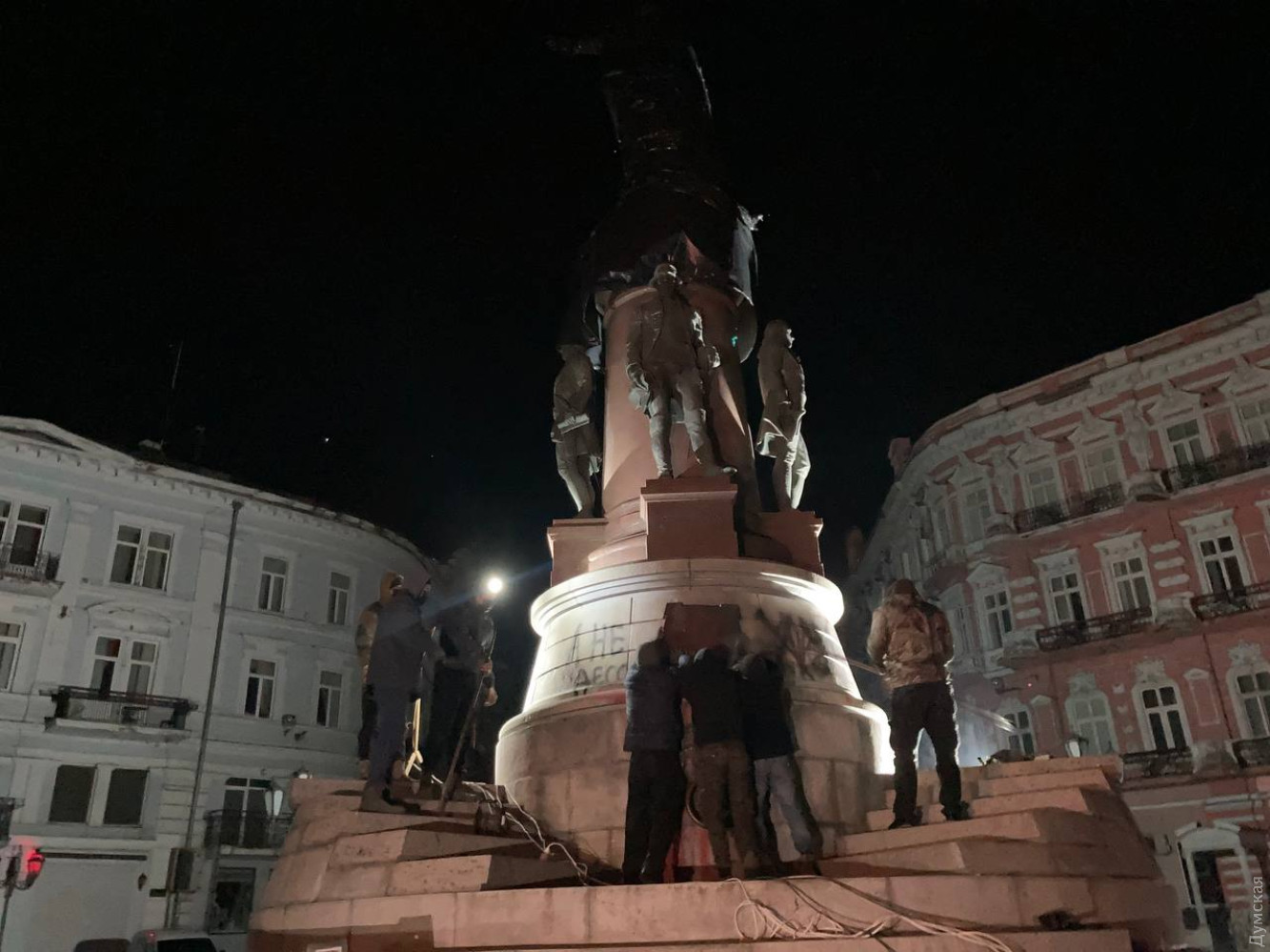 В Одесі в середу, 28 грудня, ввечері демонтували пам’ятник «Засновникам міста», центральною фігурою якого є російська імператриця Катерина ІІ. Також знесли пам'ятник російському полководцю Олександру Суворову в однойменному районі міста.