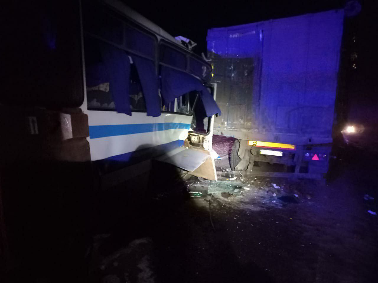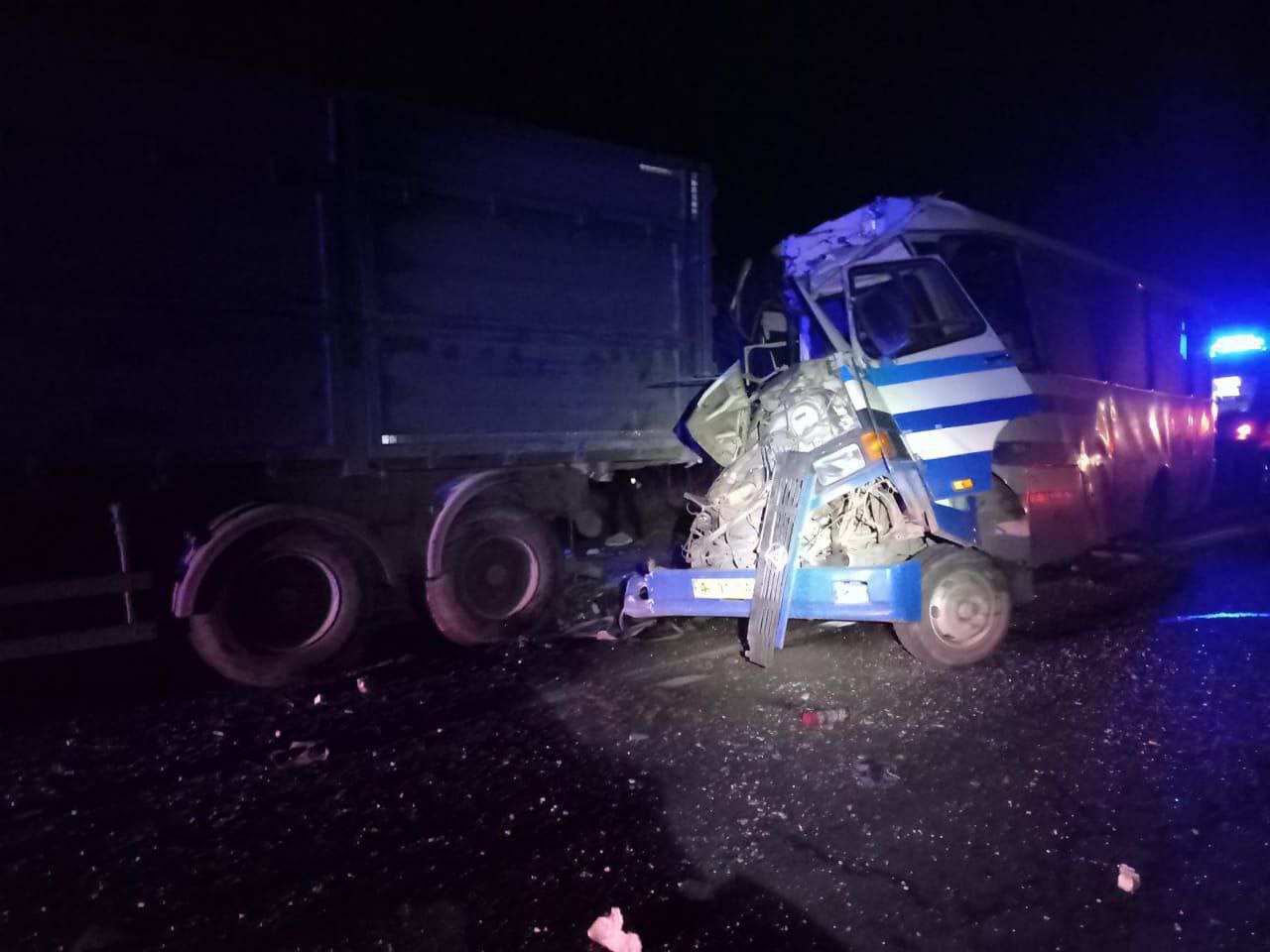 Пасажирський автобус врізався у вантажівку МАН, яка стояла на проїжджій частині, оскільки вийшла з ладу. Ймовірно, водій вчасно не помітив перешкоду на дорозі.