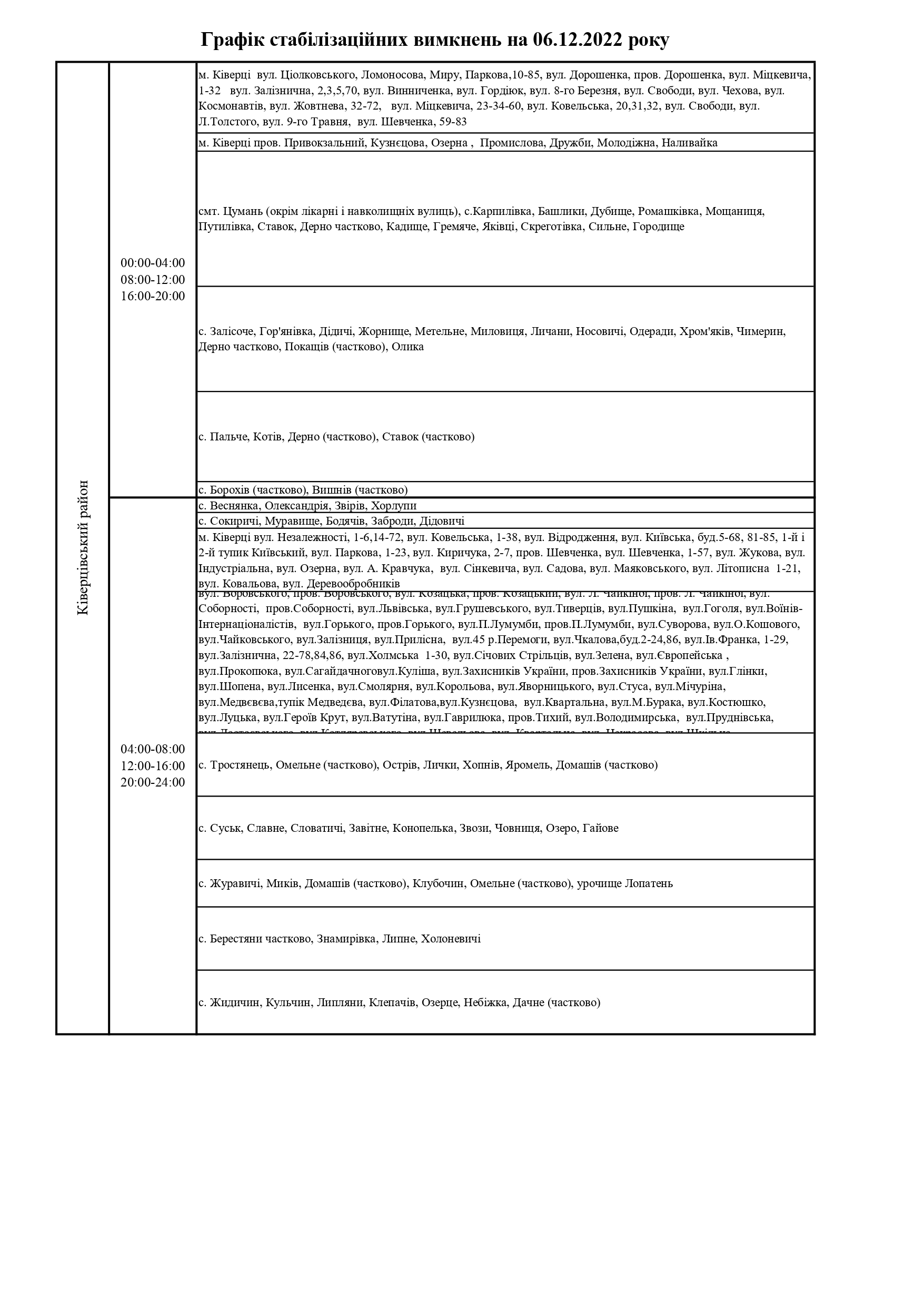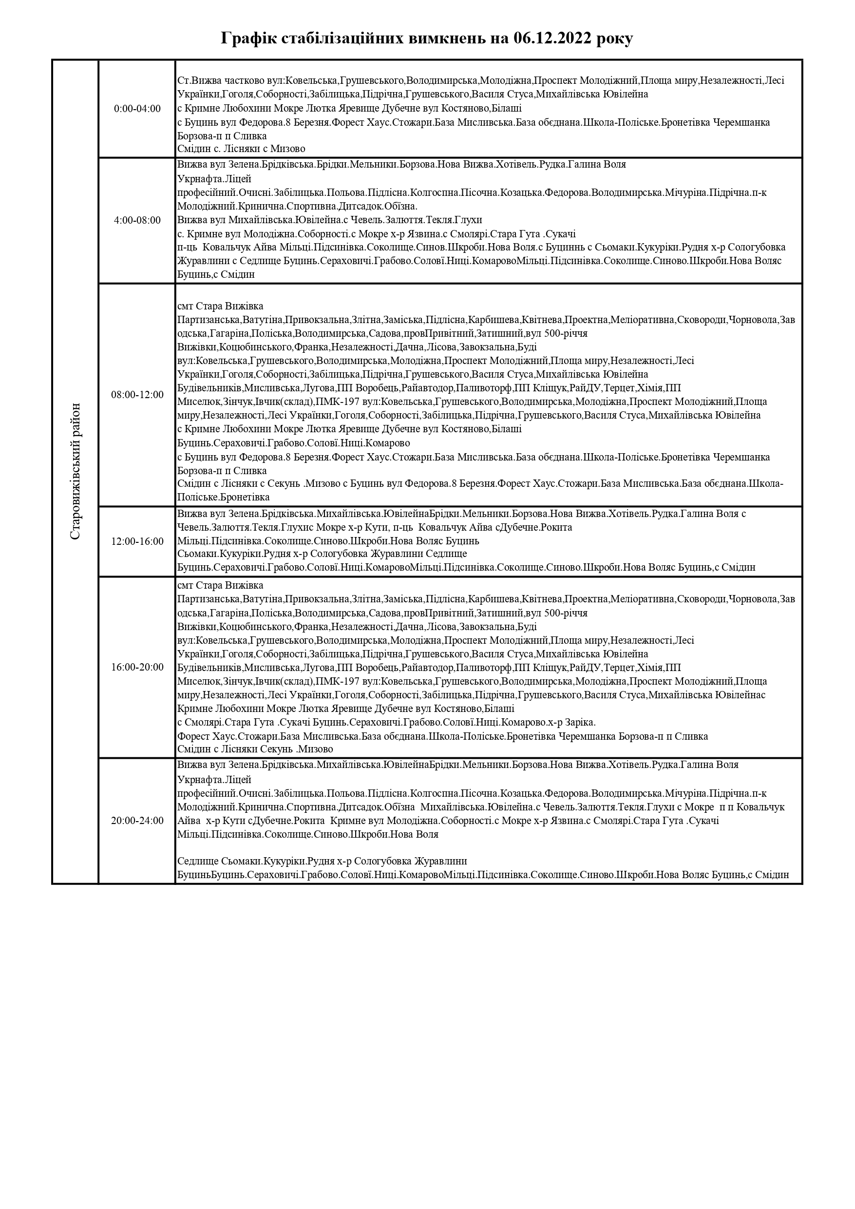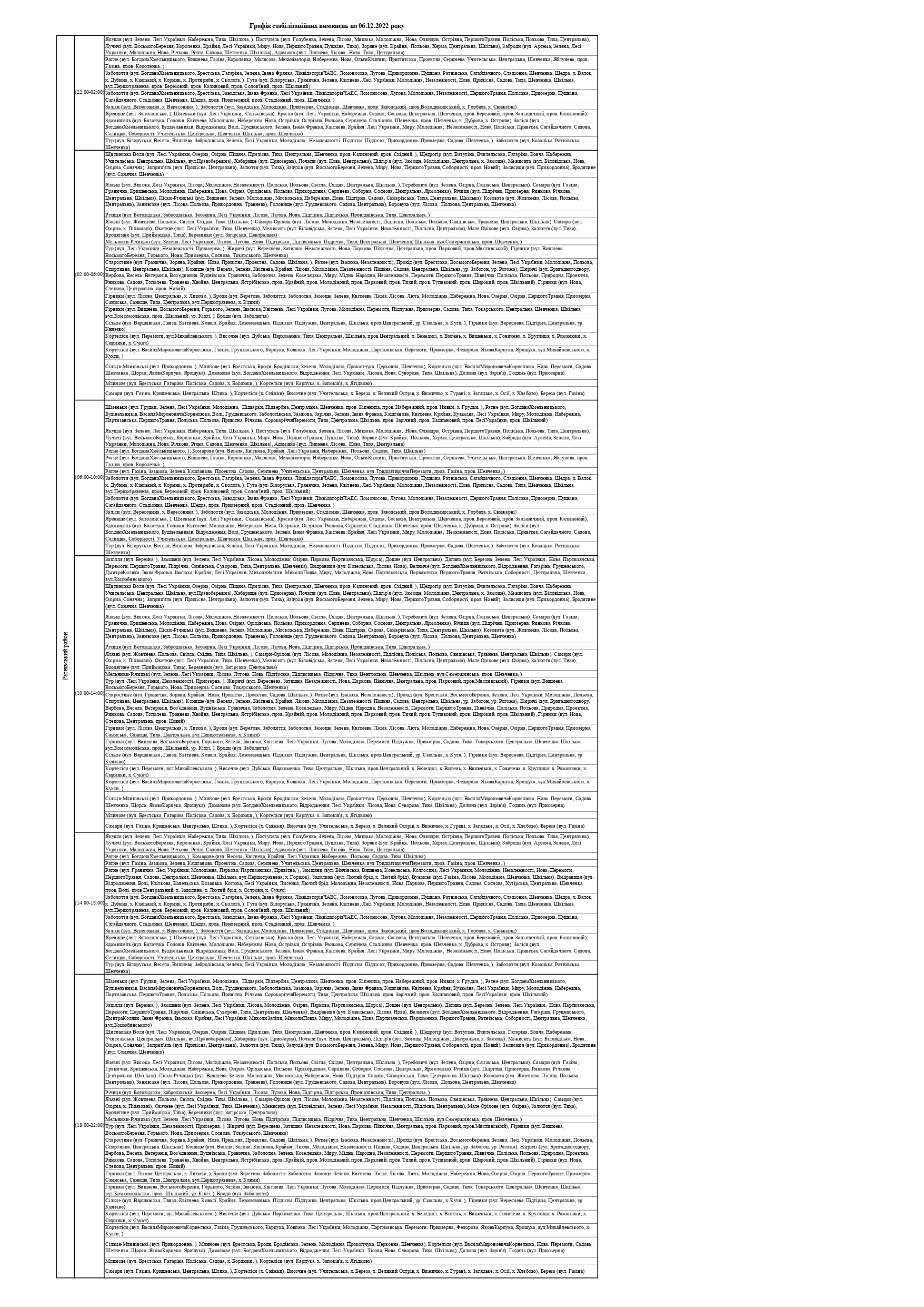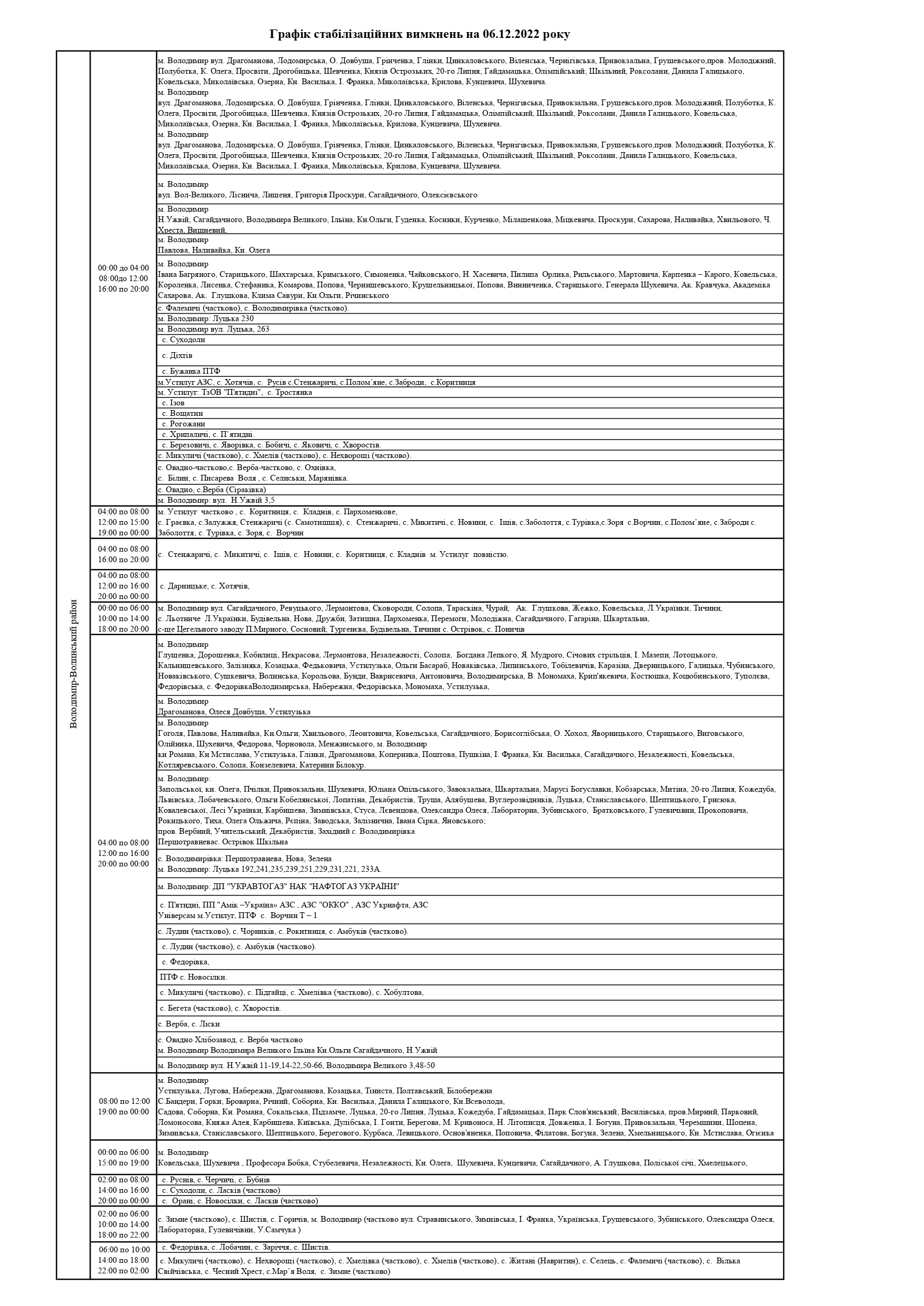 ПрАТ «Волиньобленерго»відповідно до доведених величин споживання розробило графіки стабілізаційних вимкнень по районам обслуговування.