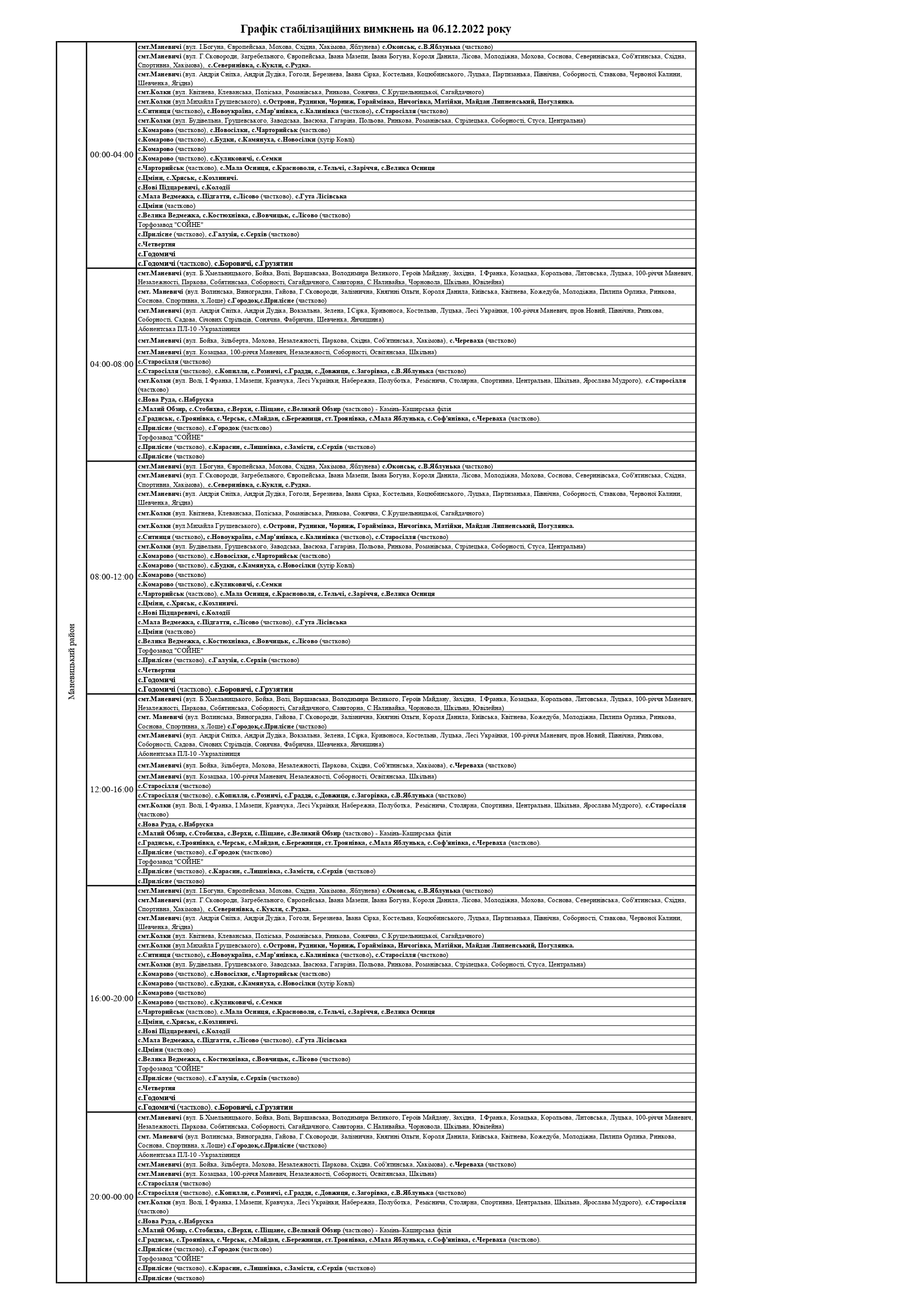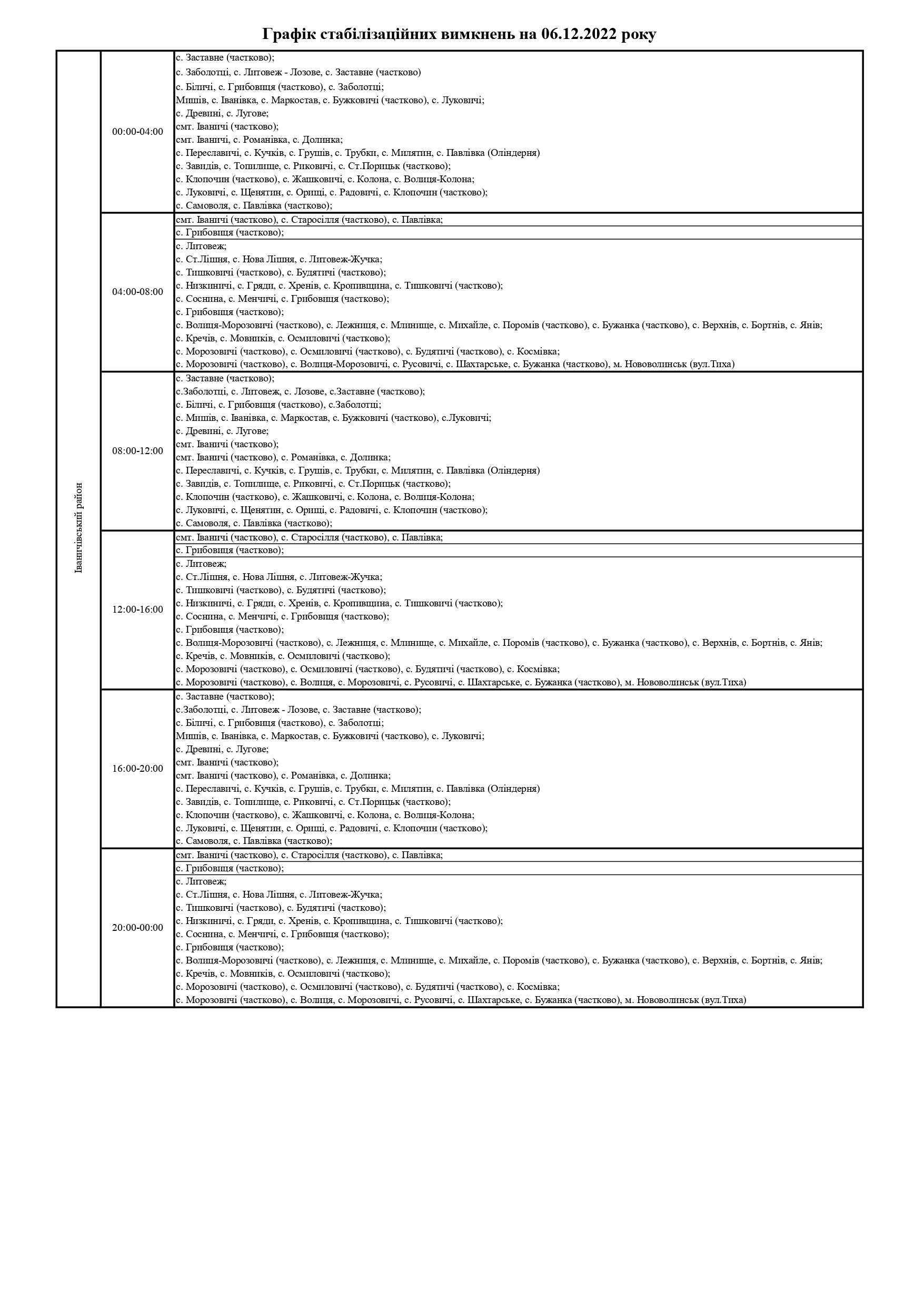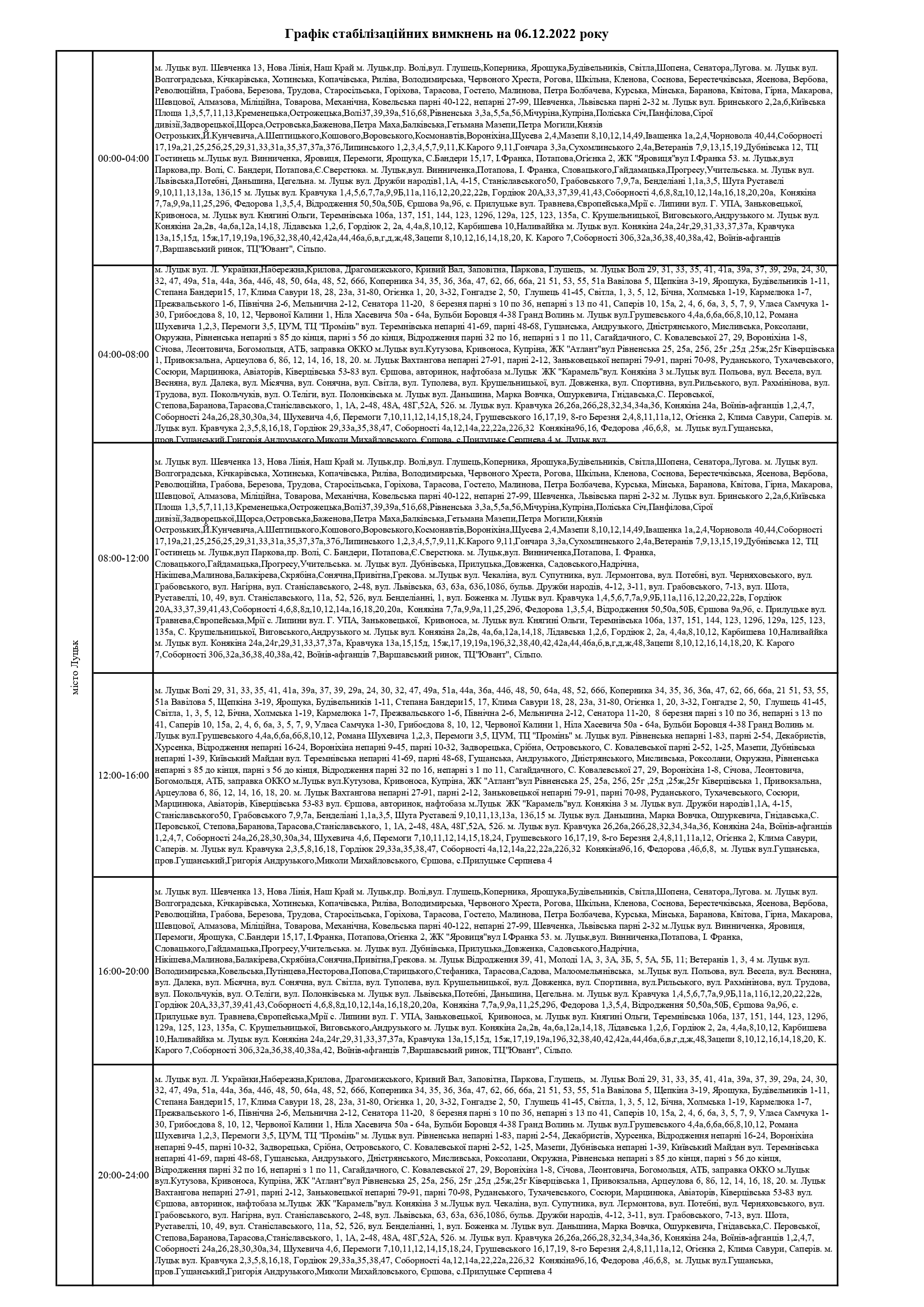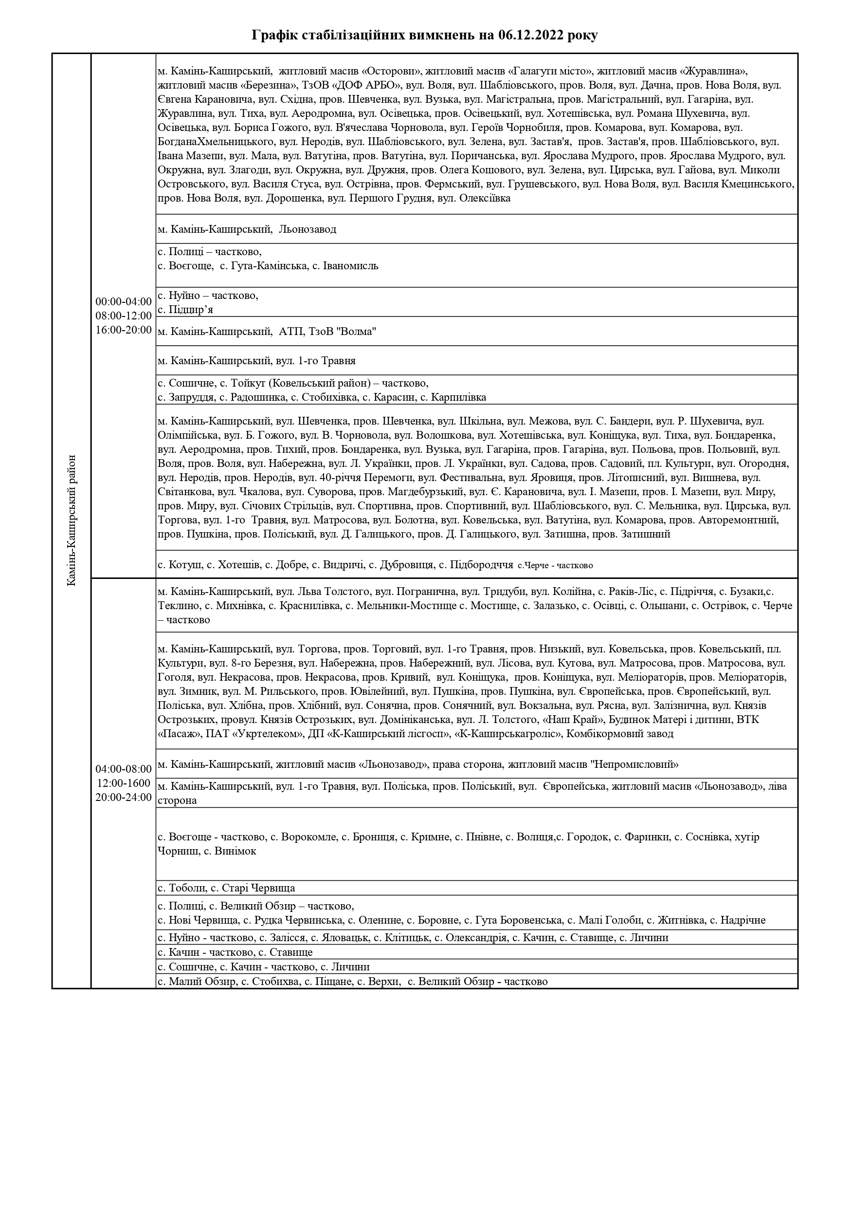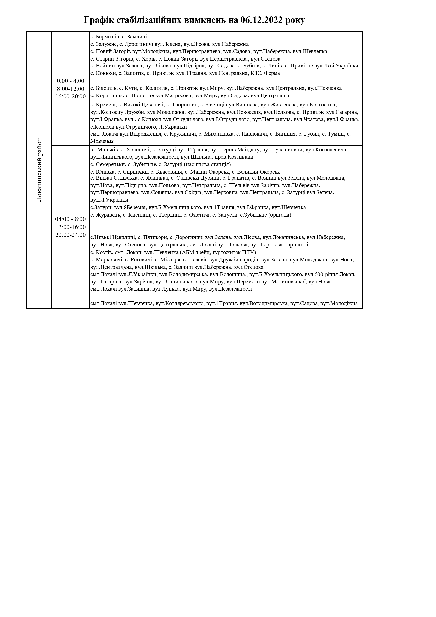 ПрАТ «Волиньобленерго»відповідно до доведених величин споживання розробило графіки стабілізаційних вимкнень по районам обслуговування.
