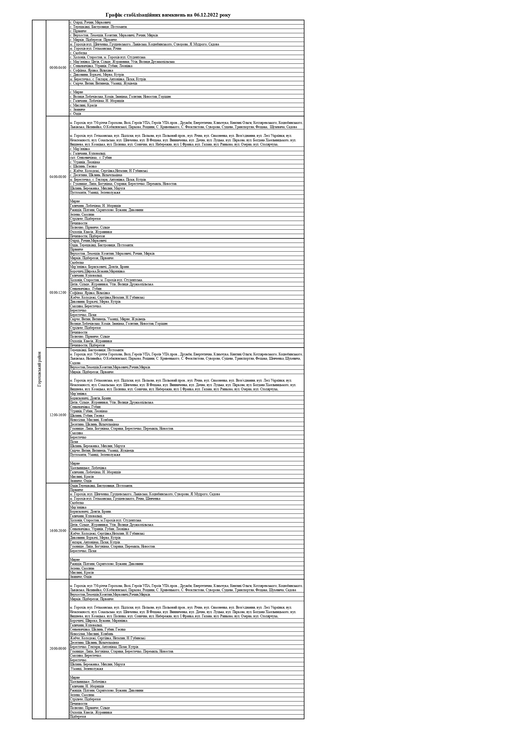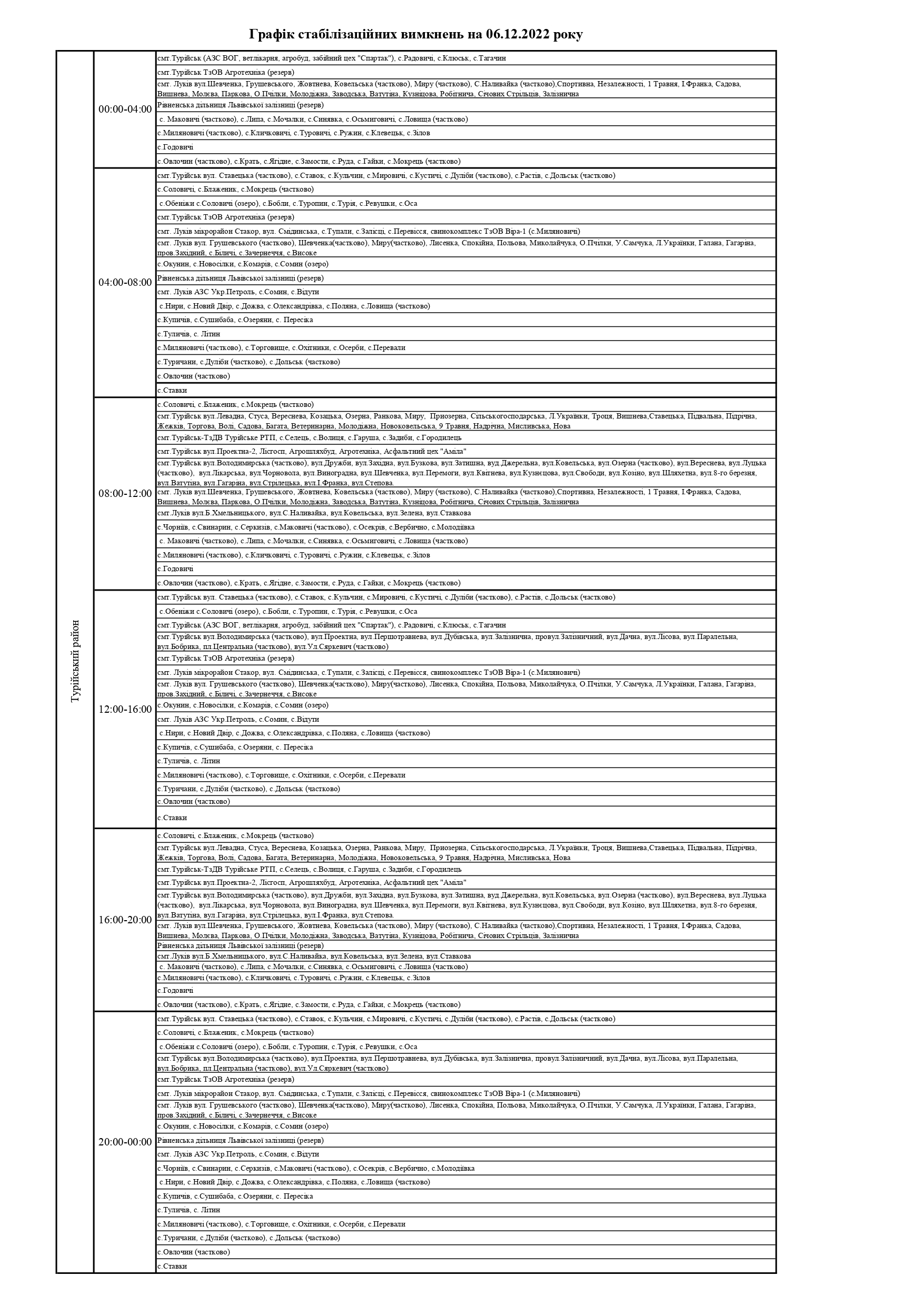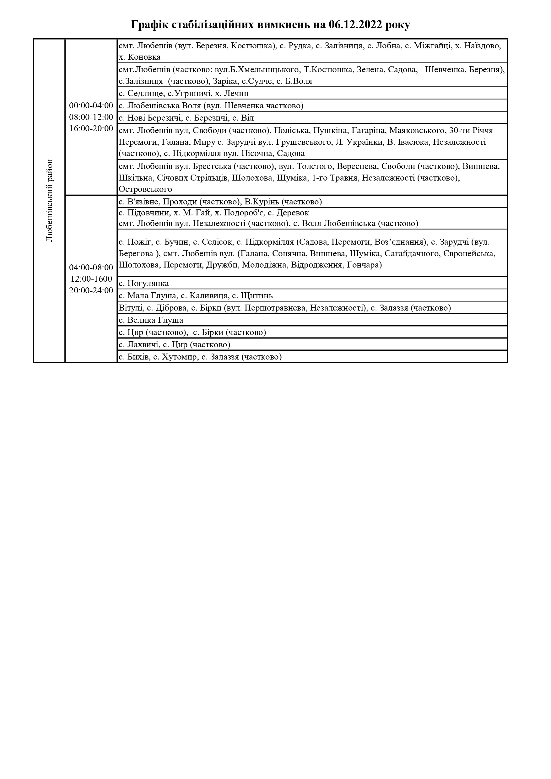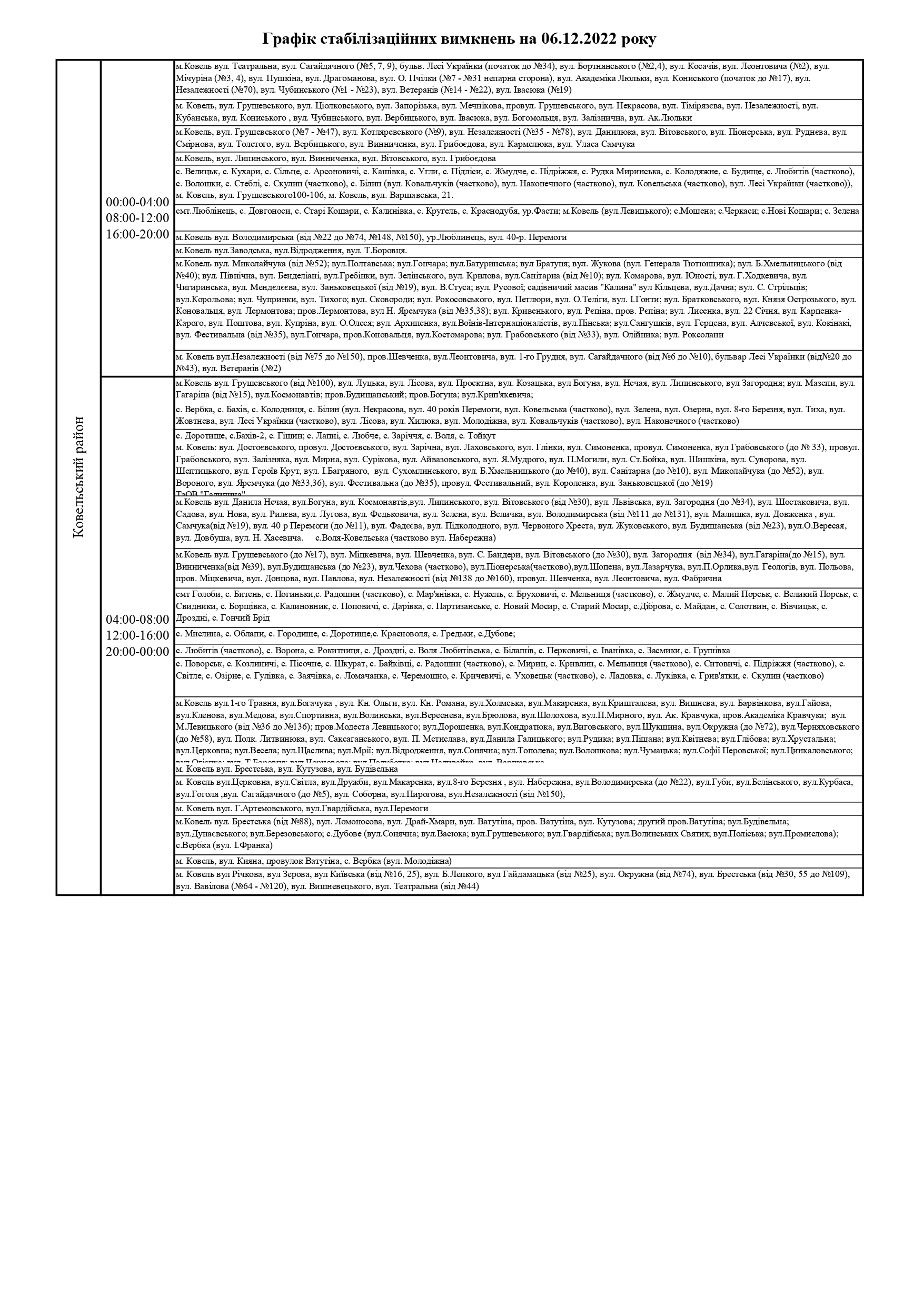 ПрАТ «Волиньобленерго»відповідно до доведених величин споживання розробило графіки стабілізаційних вимкнень по районам обслуговування.