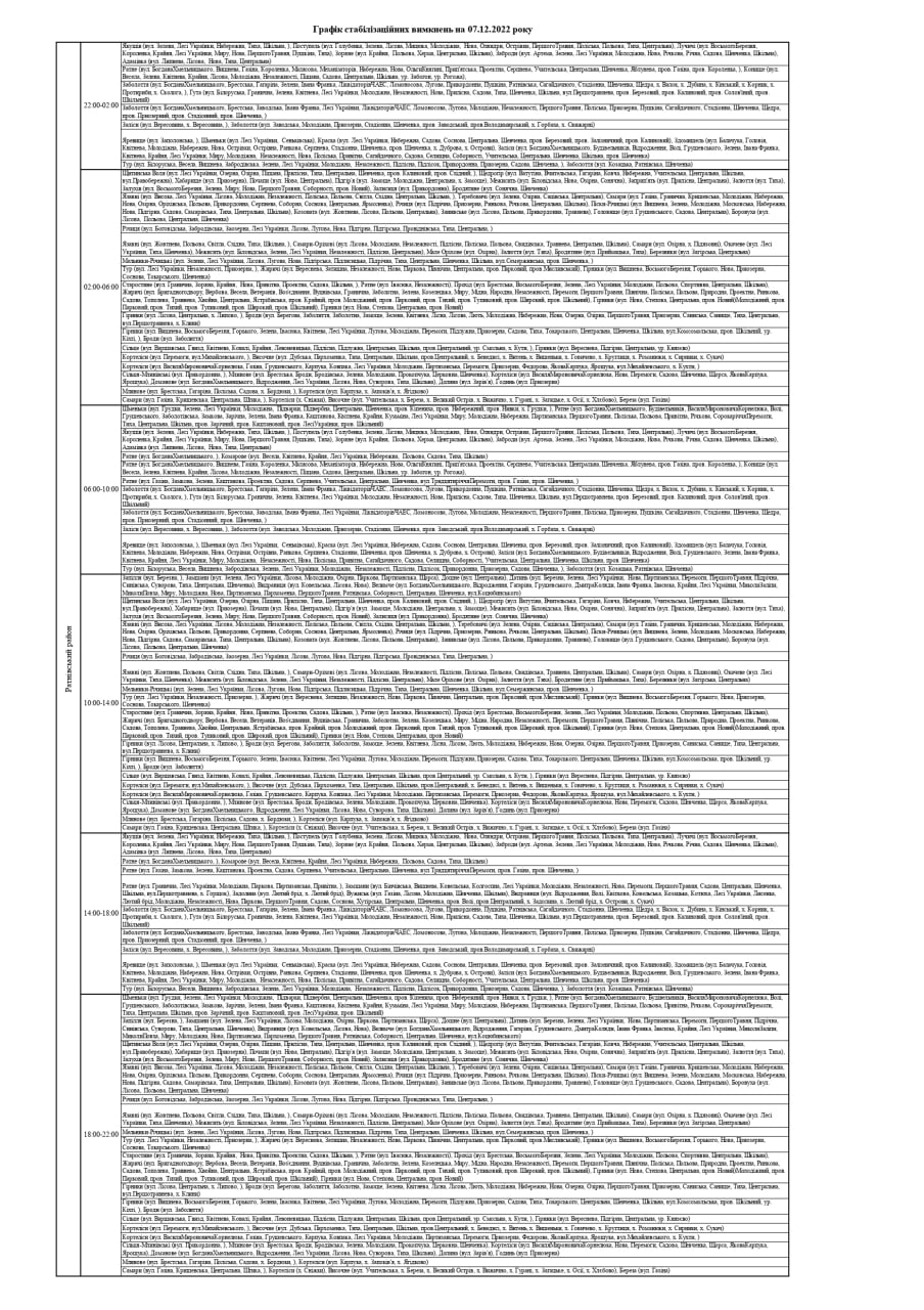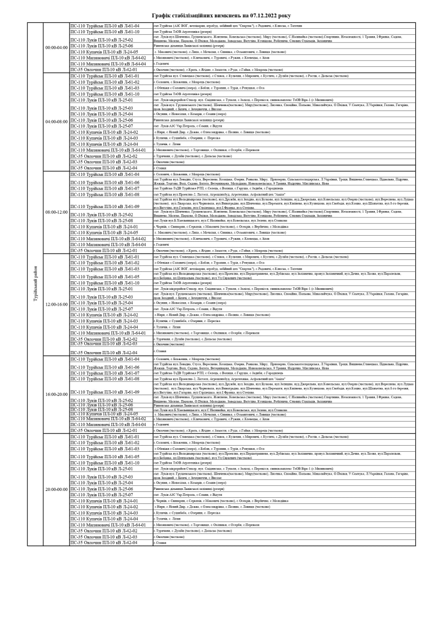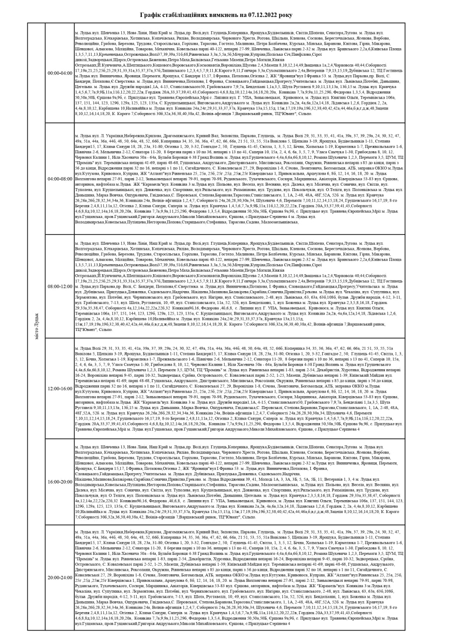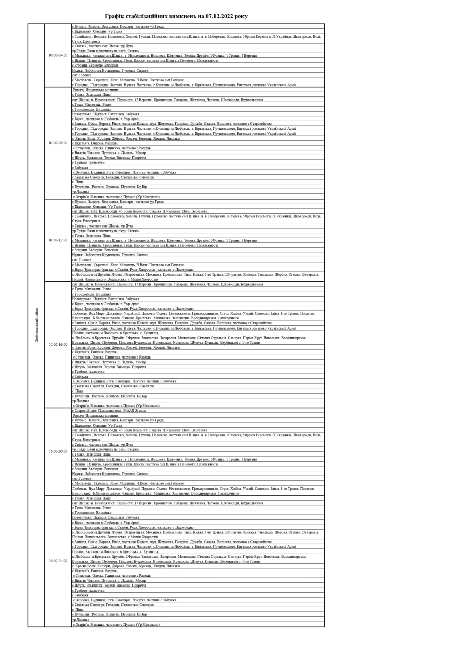 ПрАТ «Волиньобленерго» у відповідності до доведених величин споживання розроблено графіки стабілізаційних вимкнень по районам обслуговування філій Товариства.