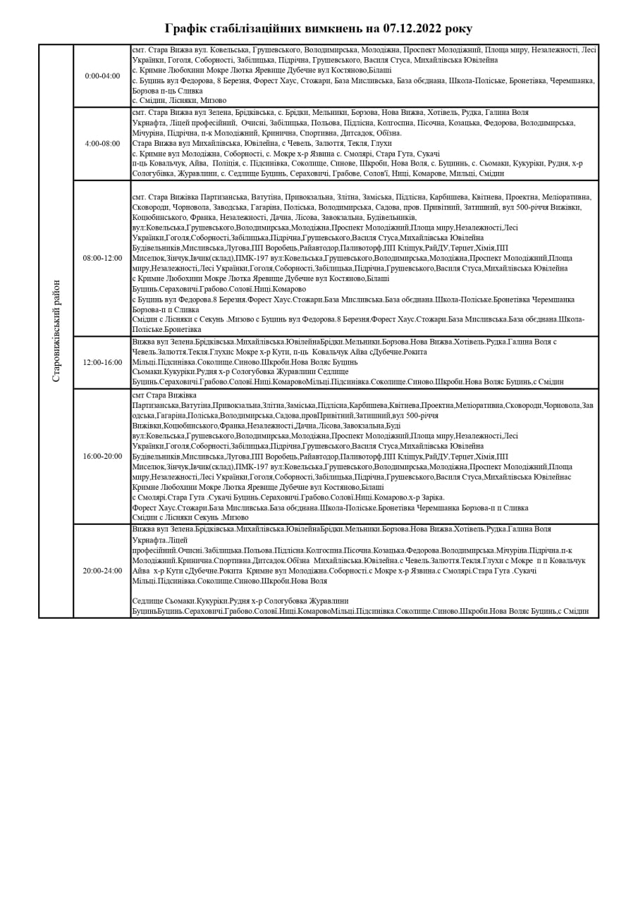 Згідно з розпорядженням НЕК «Укренерго» 7 грудня у Волинській області відбудуться погодинні відключення електроенергії (ГПВ).