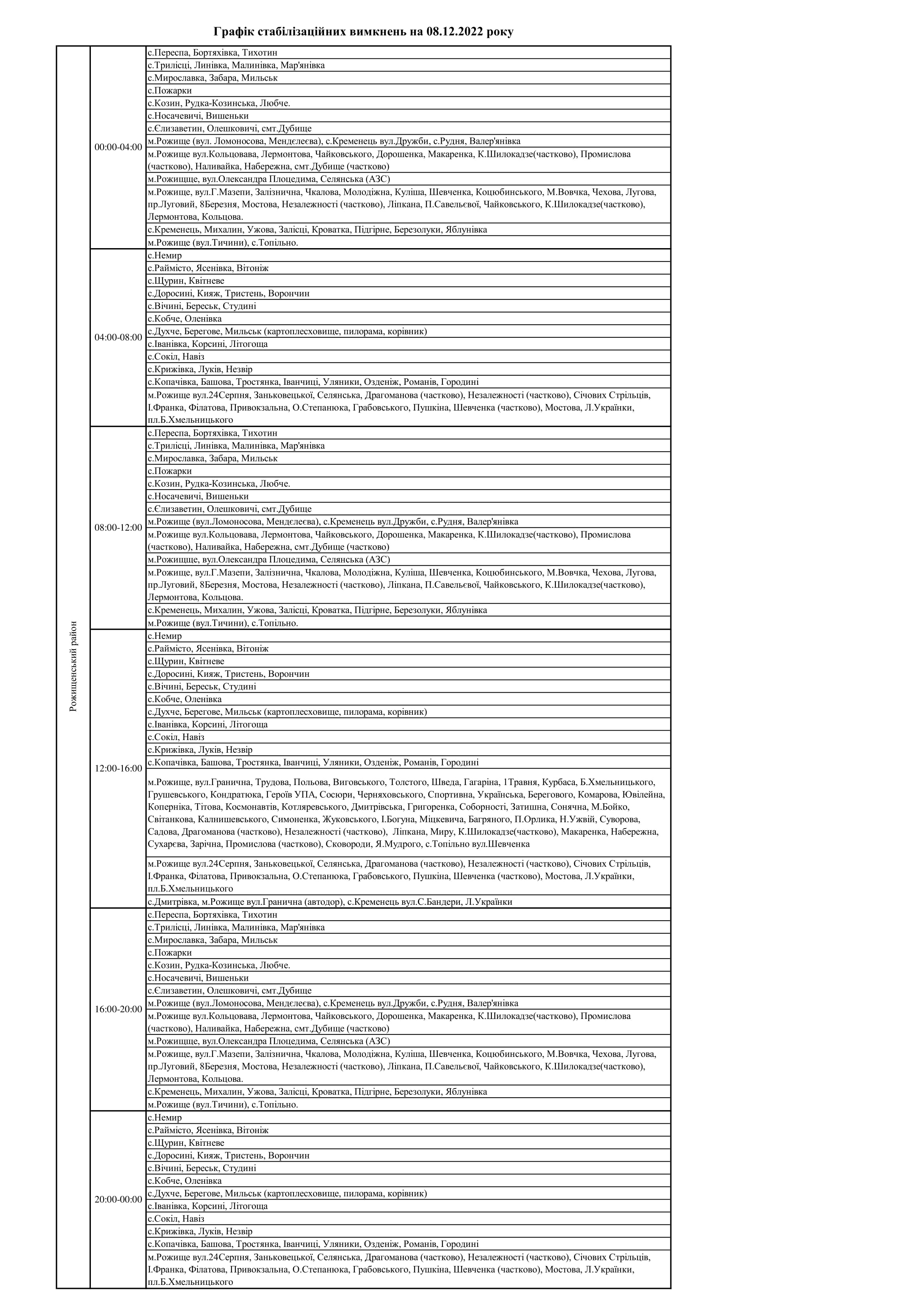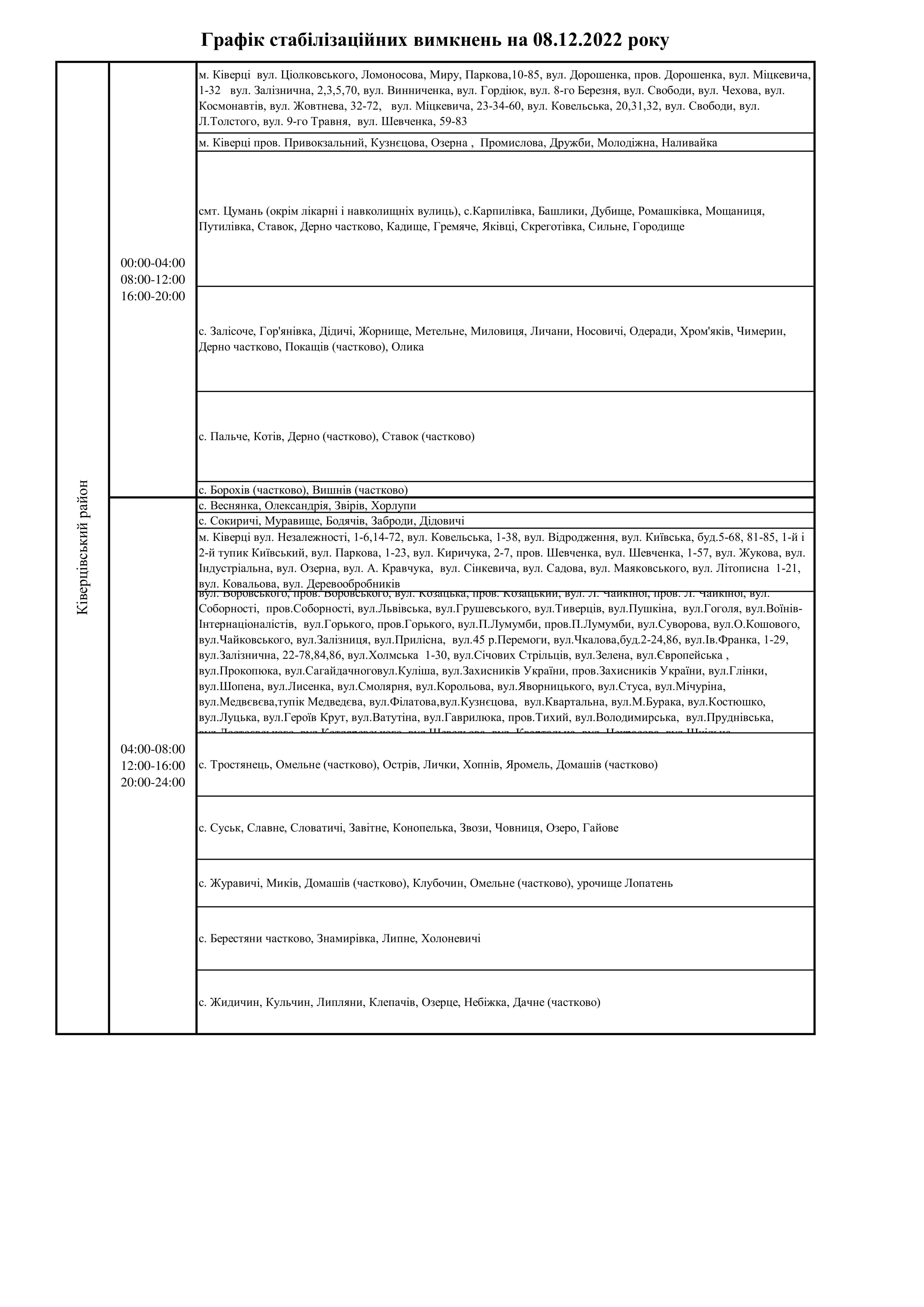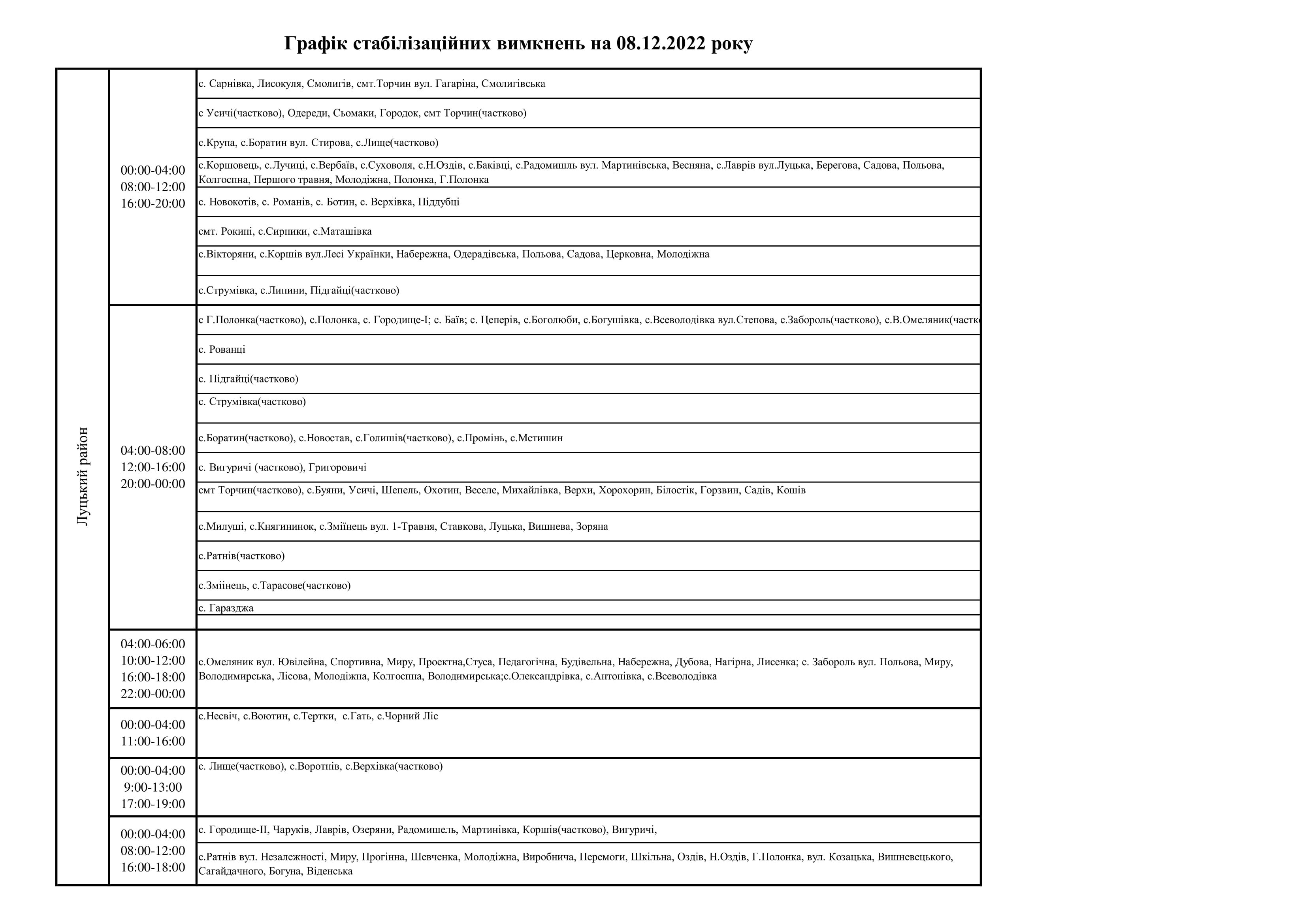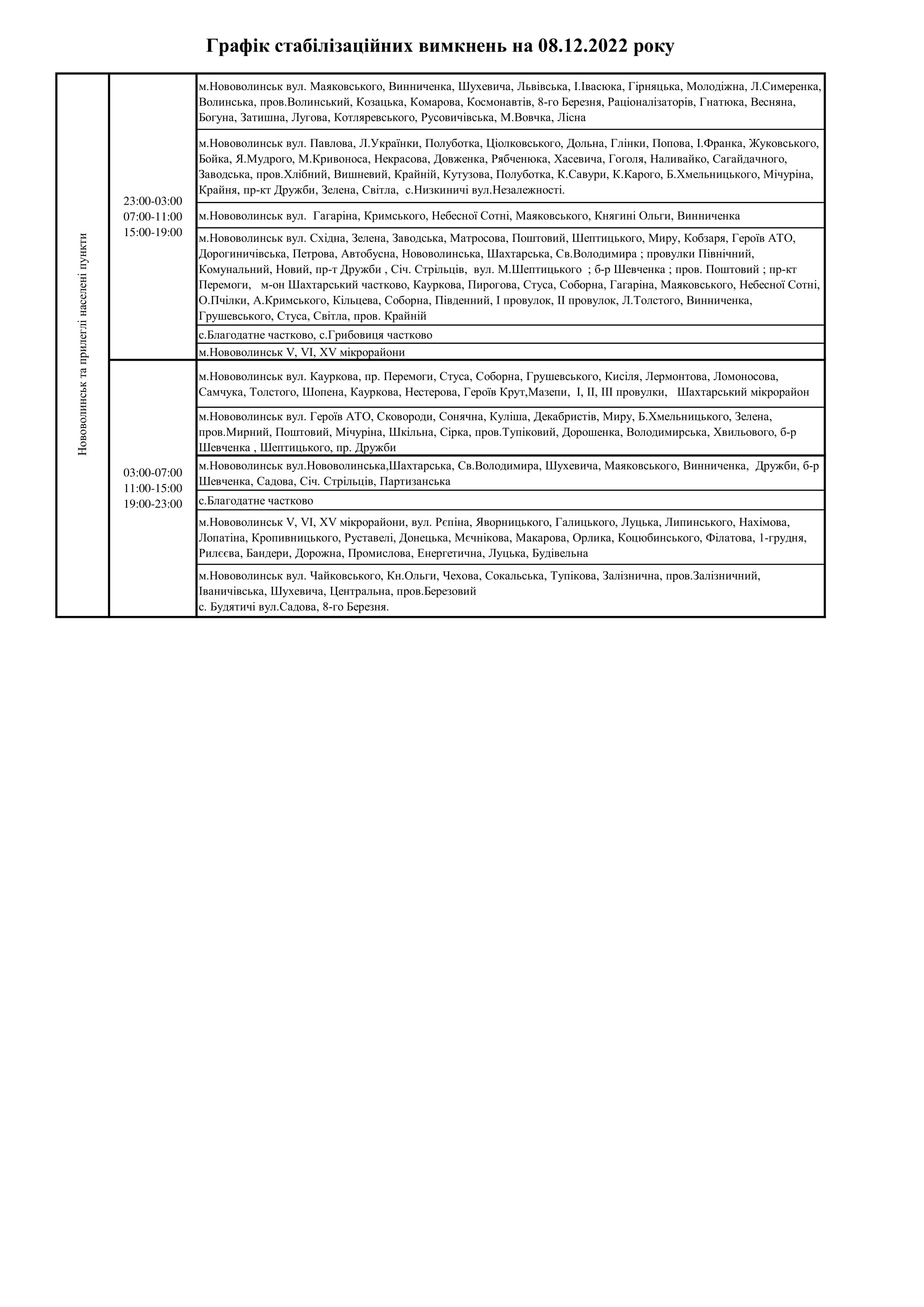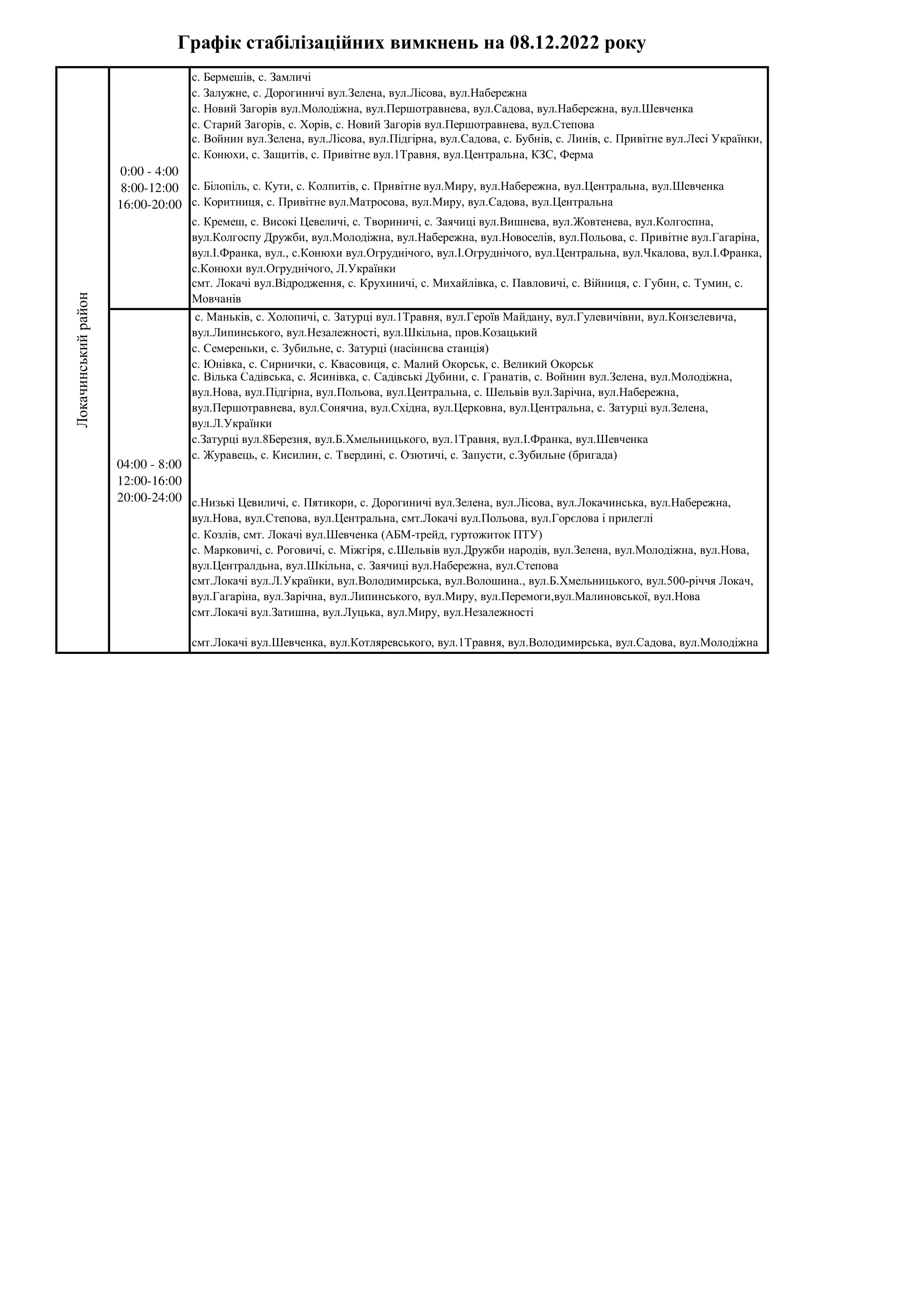 ПрАТ «Волиньобленерго» у відповідності до доведених величин споживання розроблено графіки стабілізаційних вимкнень по районам обслуговування філій Товариства.