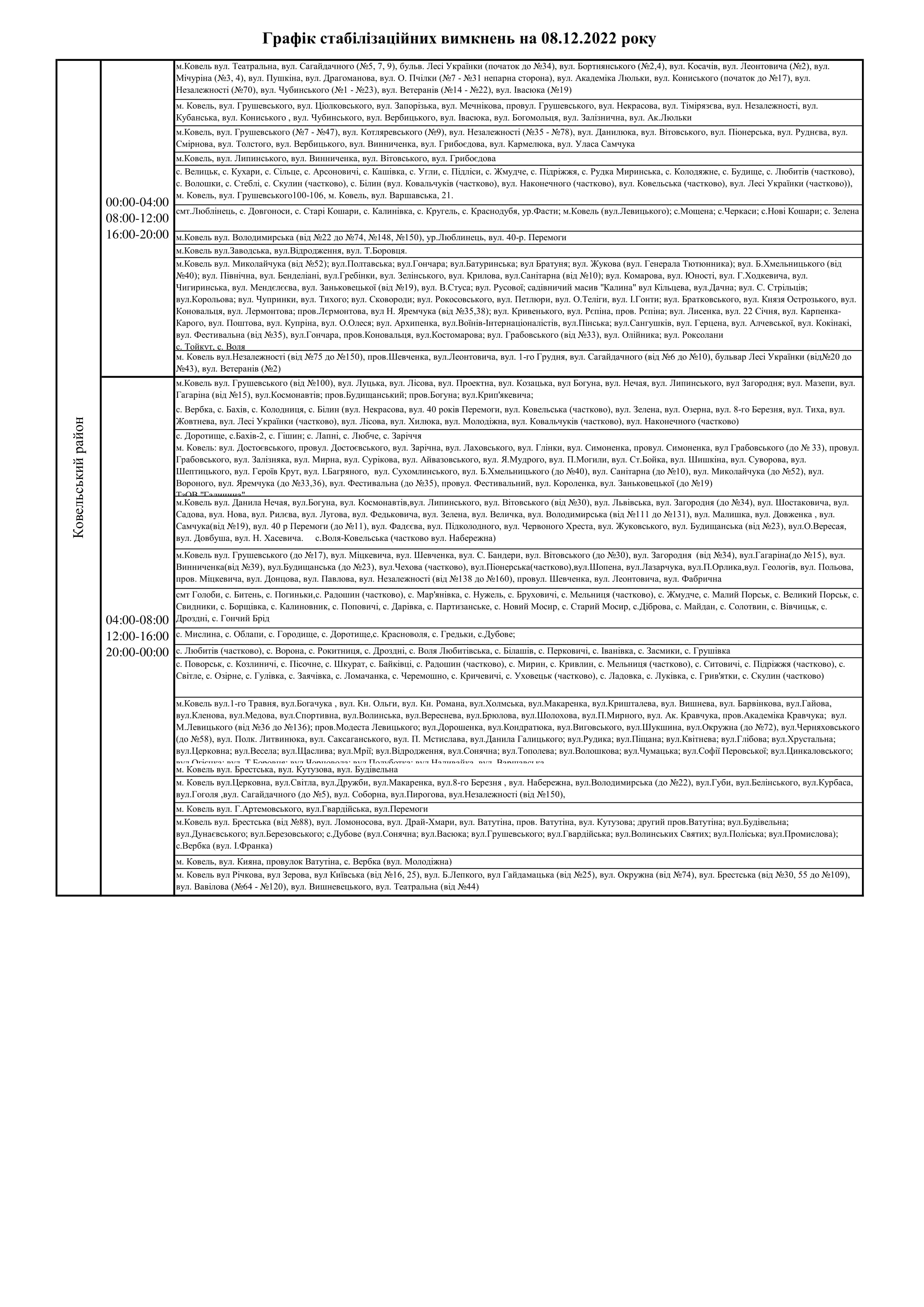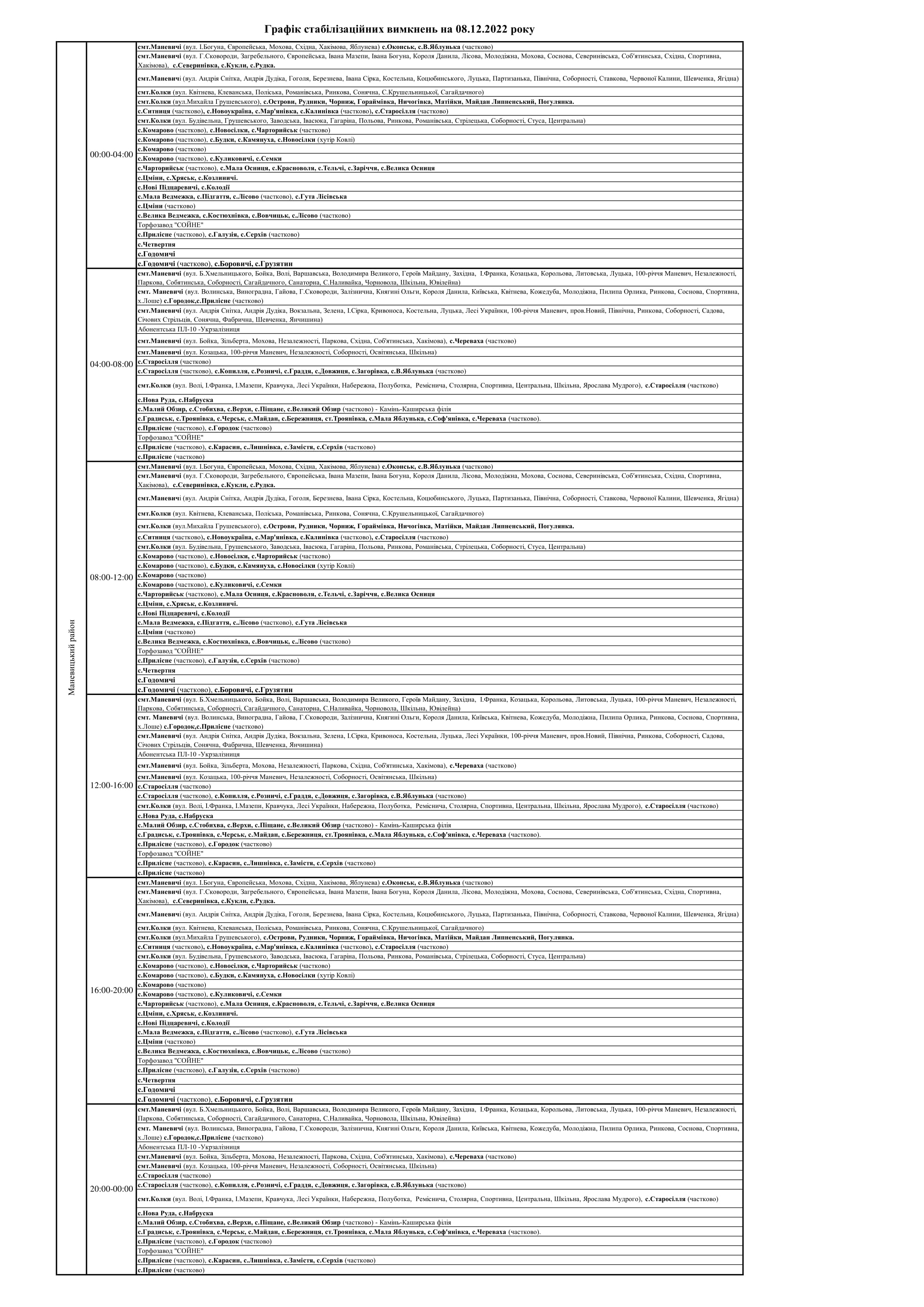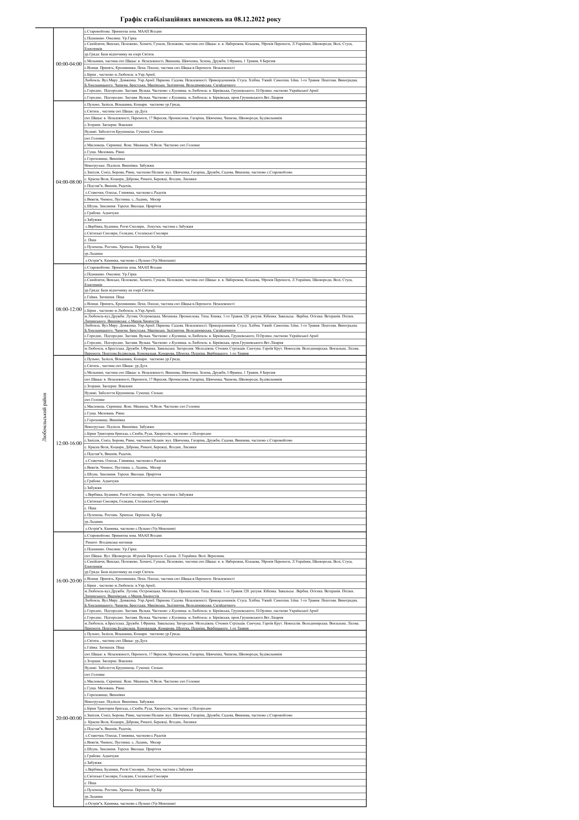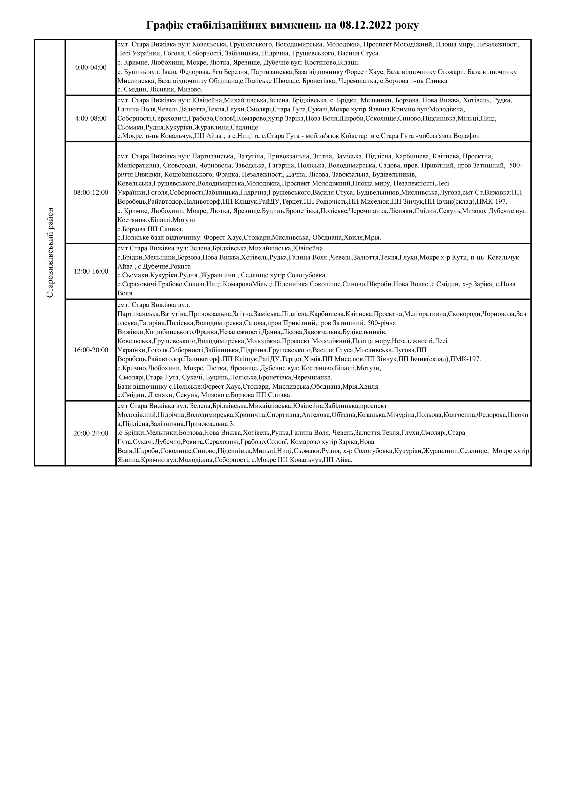ПрАТ «Волиньобленерго» у відповідності до доведених величин споживання розроблено графіки стабілізаційних вимкнень по районам обслуговування філій Товариства.
