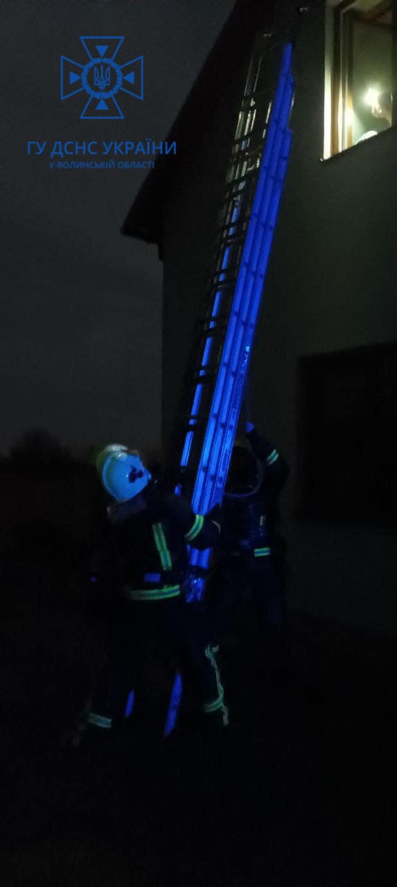У селі Небіжка Луцької громади Волині рятувальники під час пожежі дістали з вікна другого поверху трьох людей.