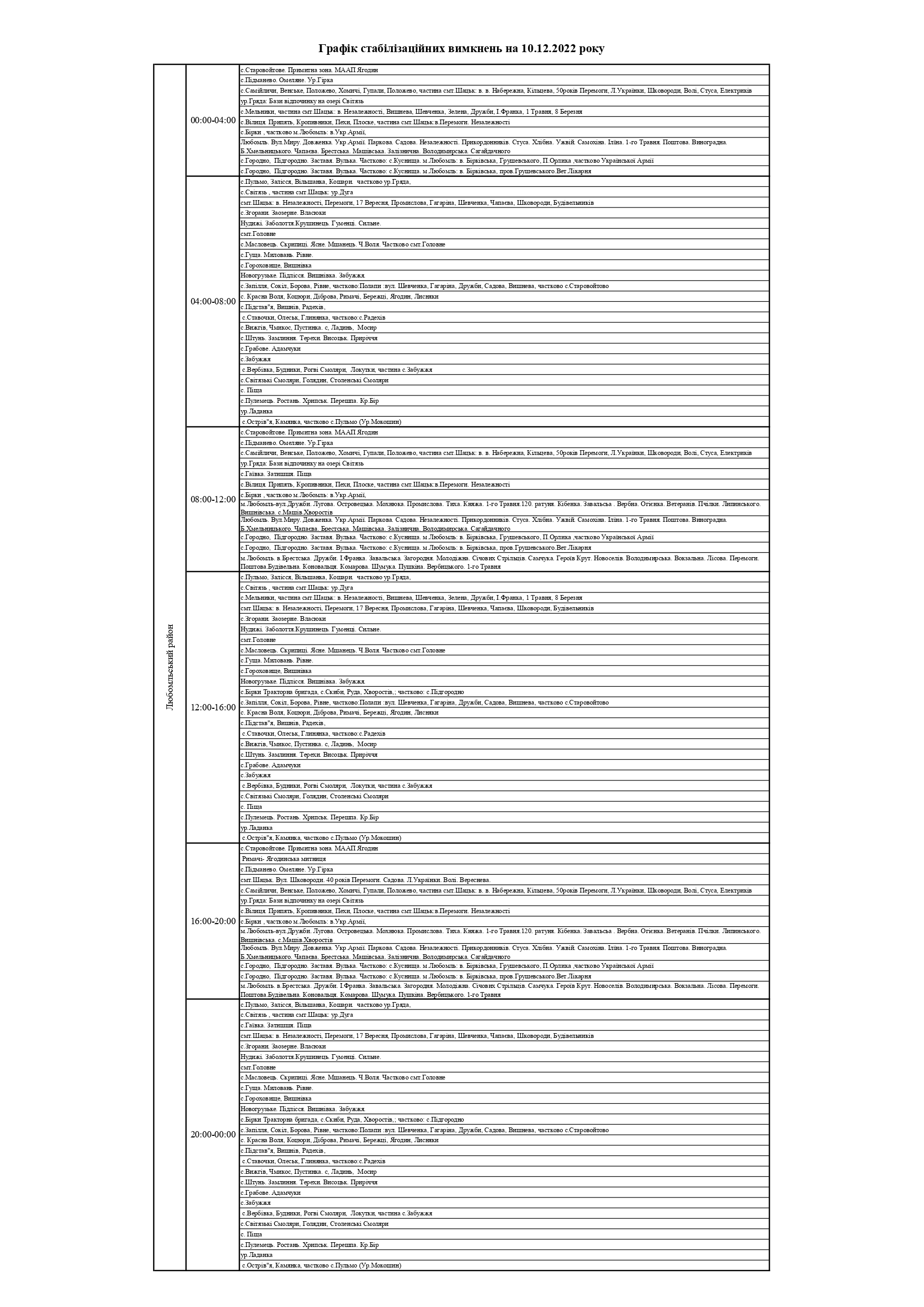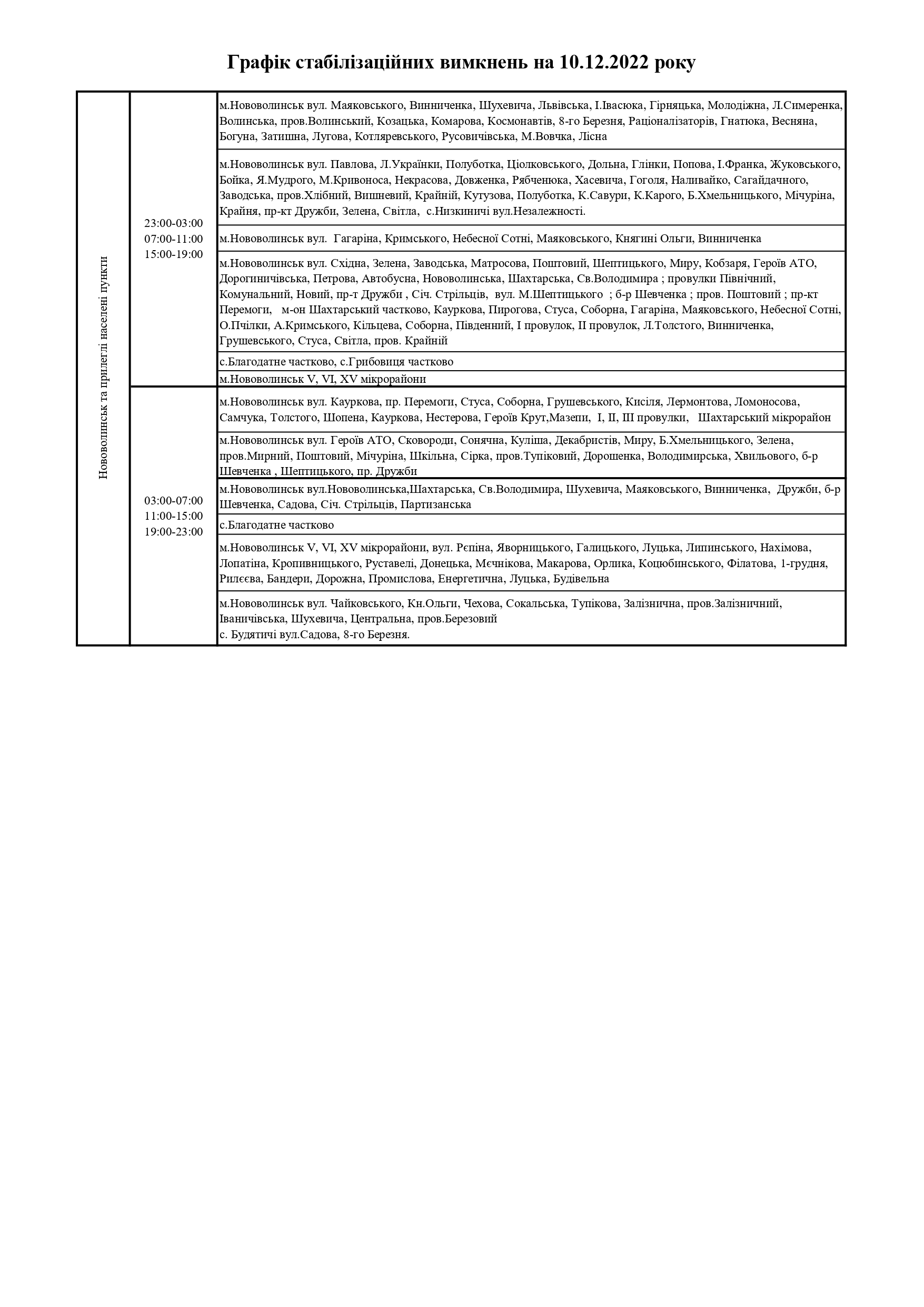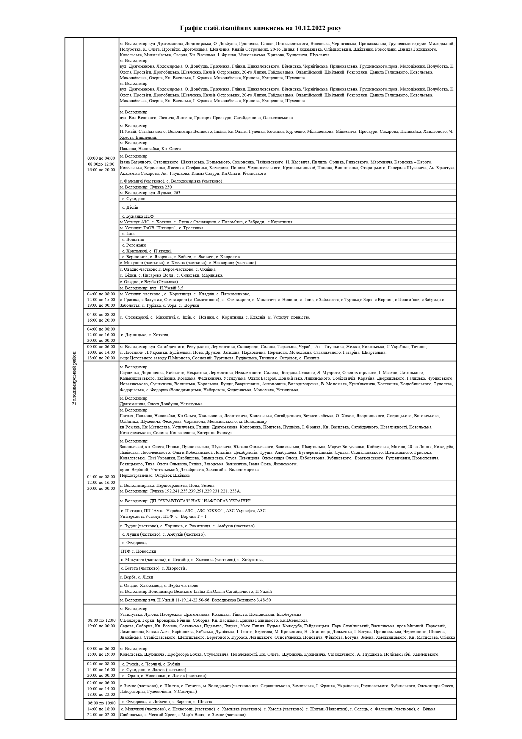 Відтак, у суботу, 10 грудня, на Волині здійснюватимуть стабілізаційні вимкнення електроенергії, - повідомили у ПрАТ «Волиньобленерго».