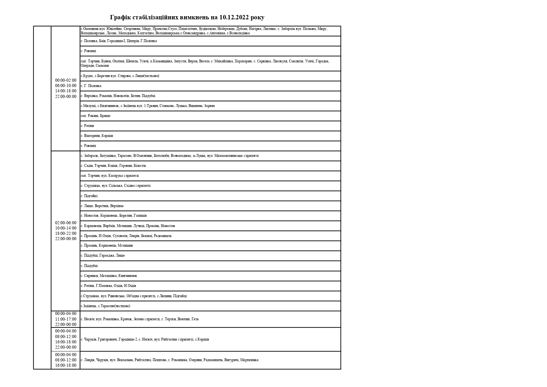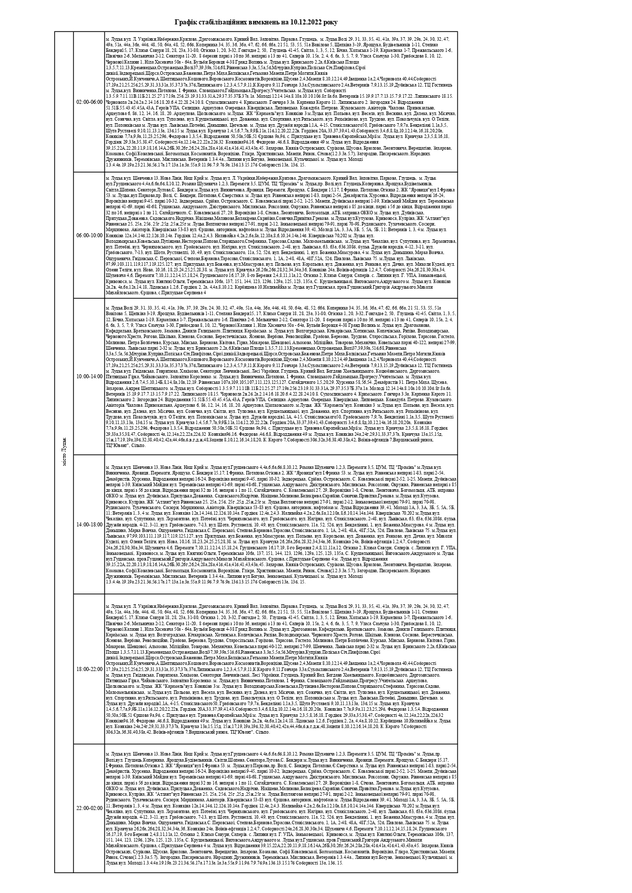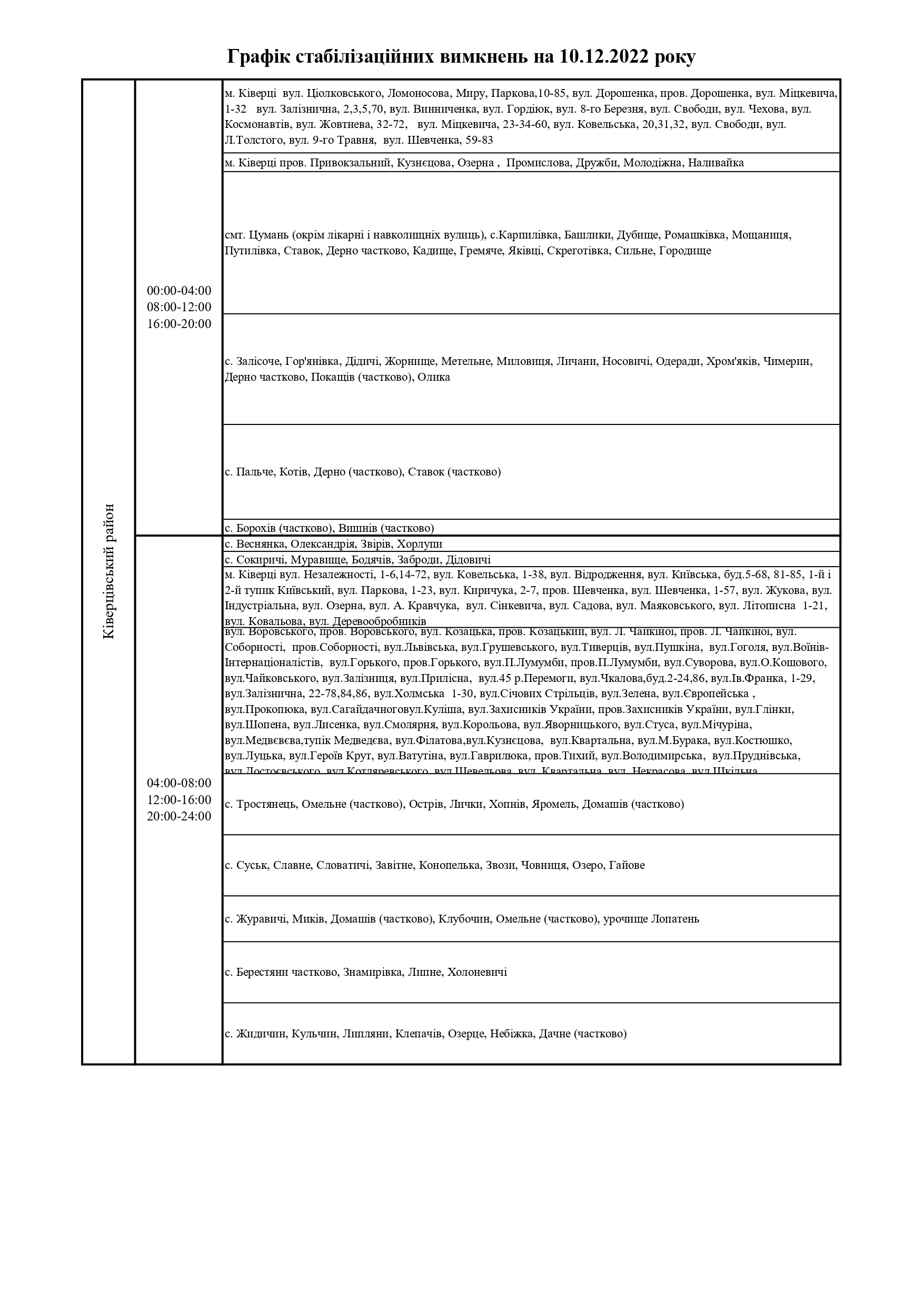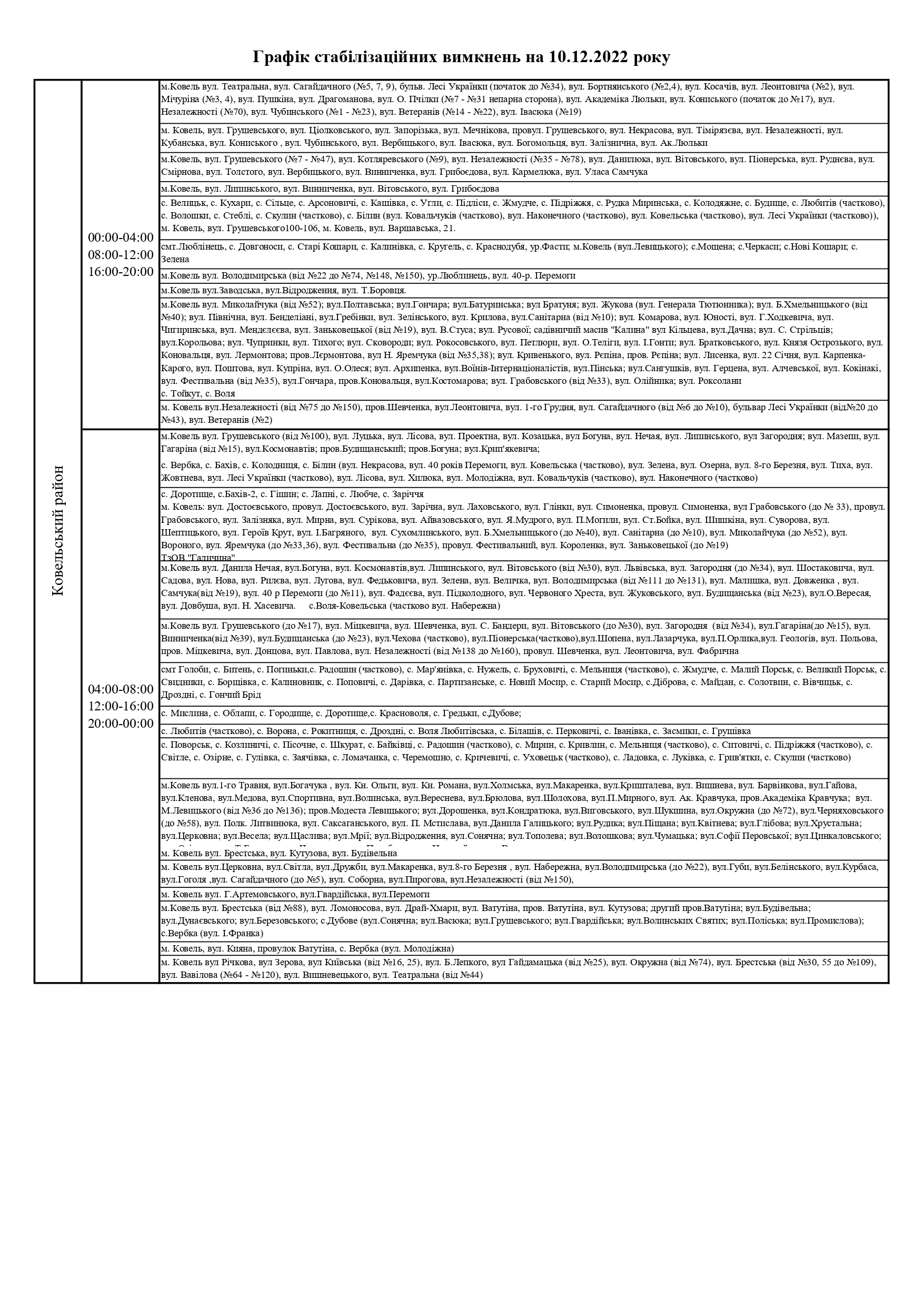 Відтак, у суботу, 10 грудня, на Волині здійснюватимуть стабілізаційні вимкнення електроенергії, - повідомили у ПрАТ «Волиньобленерго».