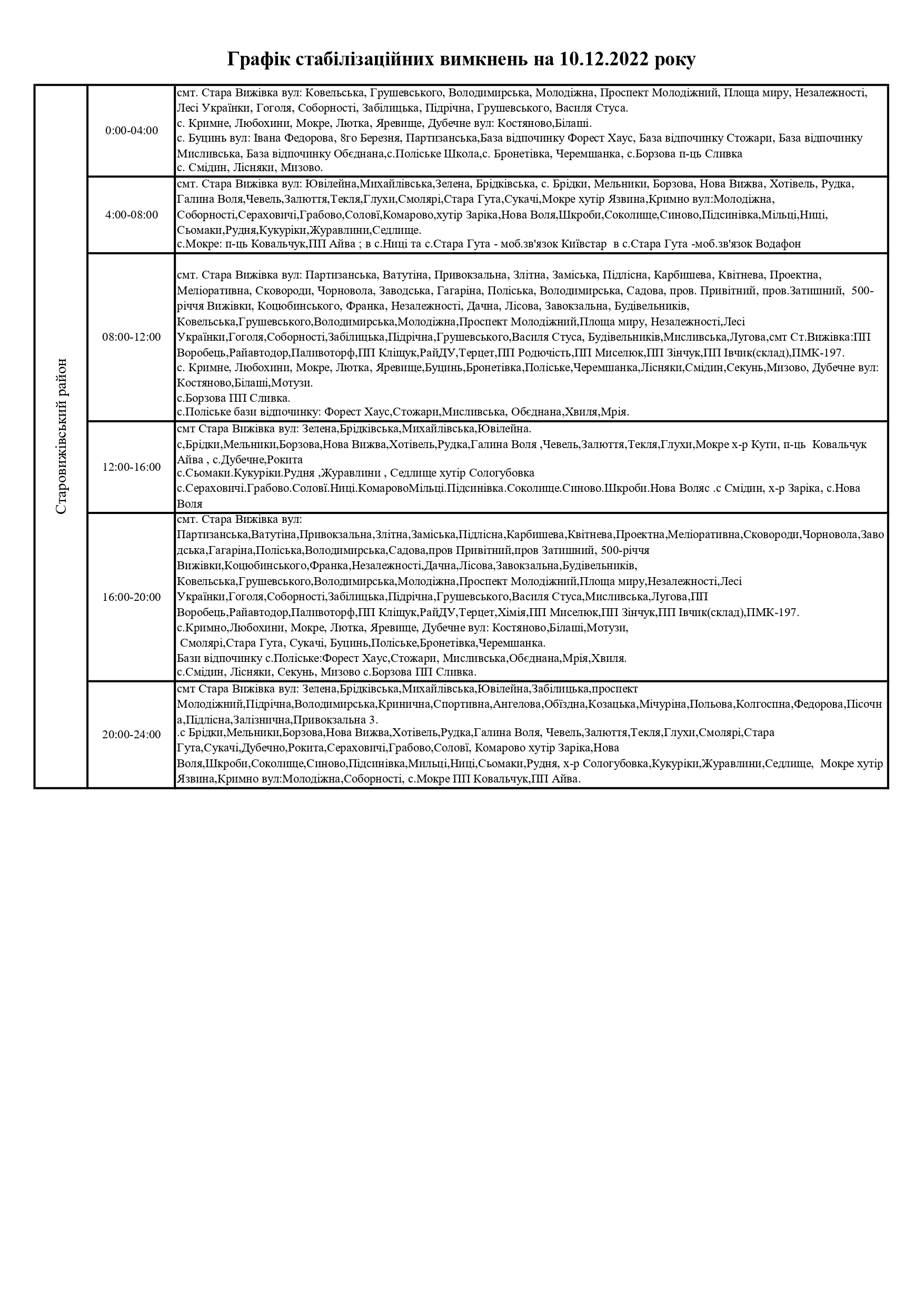 Час відключення та відновлення електропостачання може відрізнятись від заявленого у ГПВ на 10-20 хвилин. Таке відхилення пов’язане із технологічним процесом перемикання черг службами «Волиньобленерго».