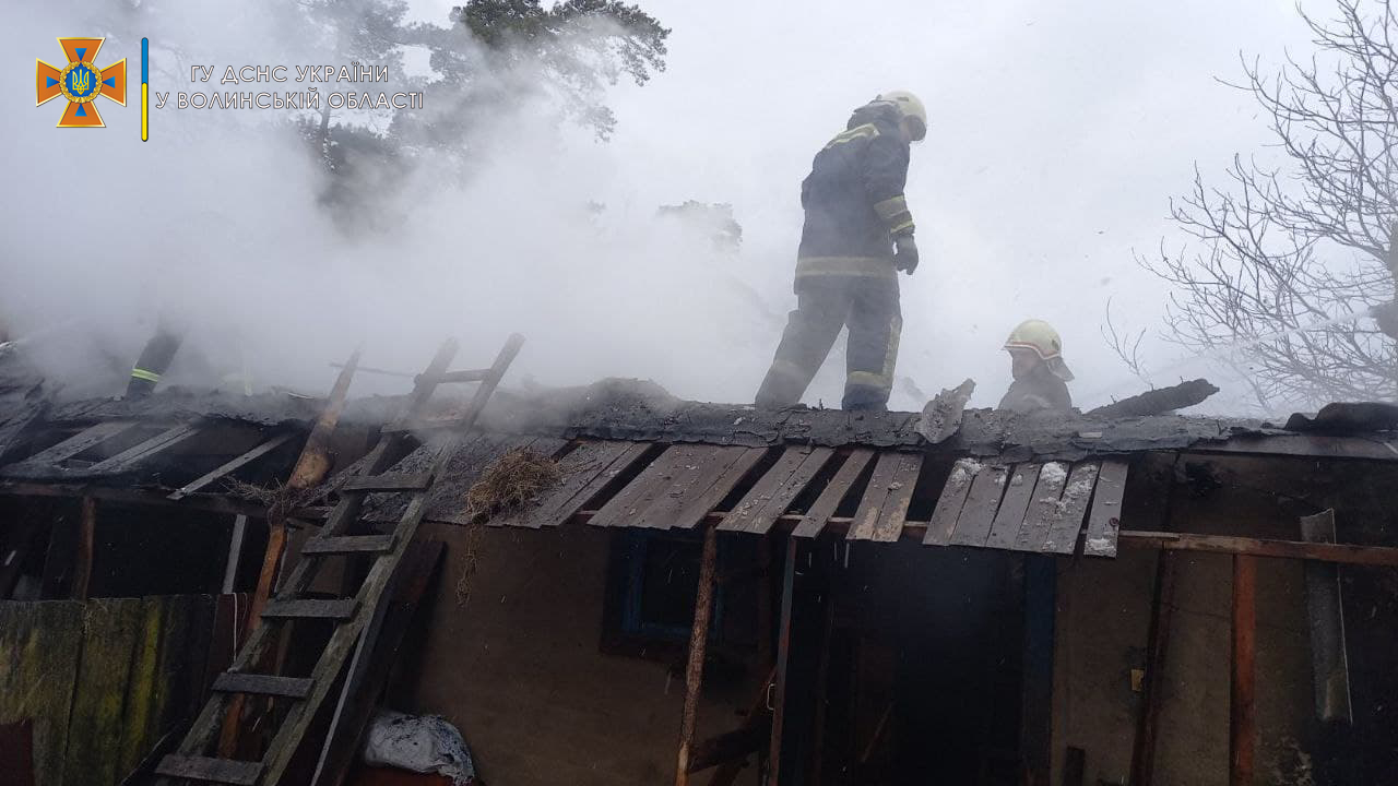 У понеділок, 31 січня, рятувальники гасили пожежі у двох господарських будівлях у селах Луцького району Волині.