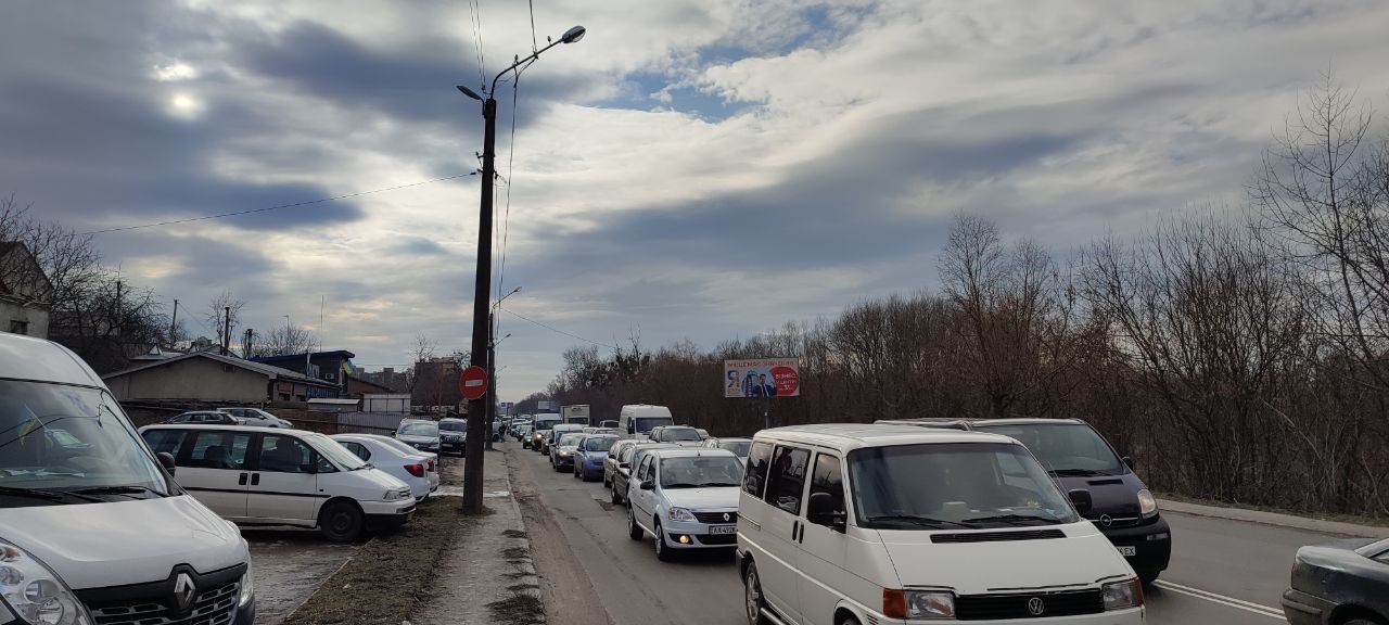 З відео видно, що аварія сталася за участю двох автомобілів: таксі «Bolt» та «Reno». На дорозі утворився величезний затор.