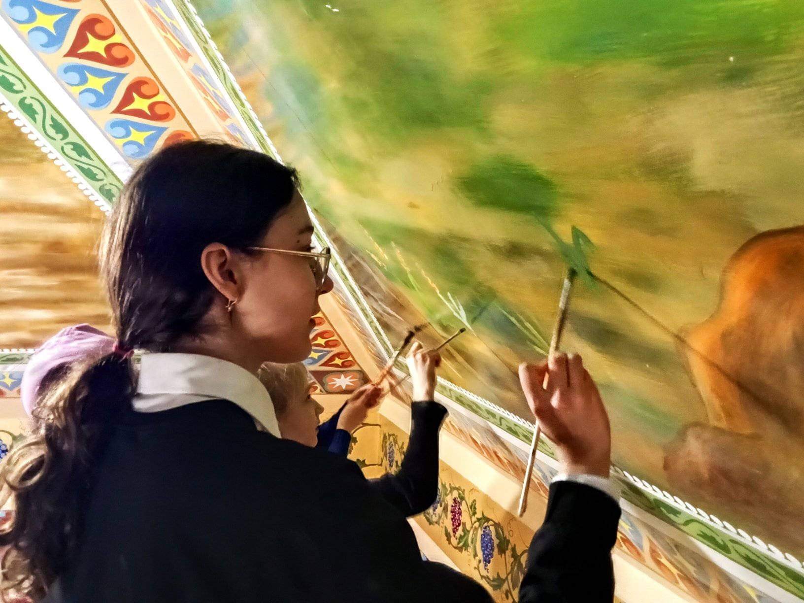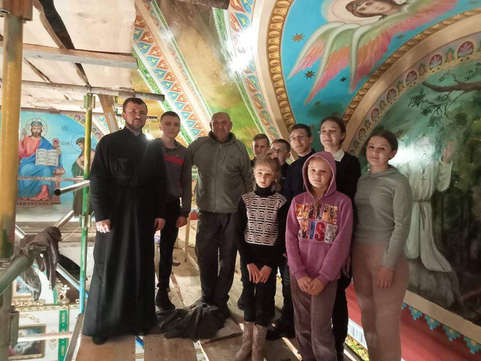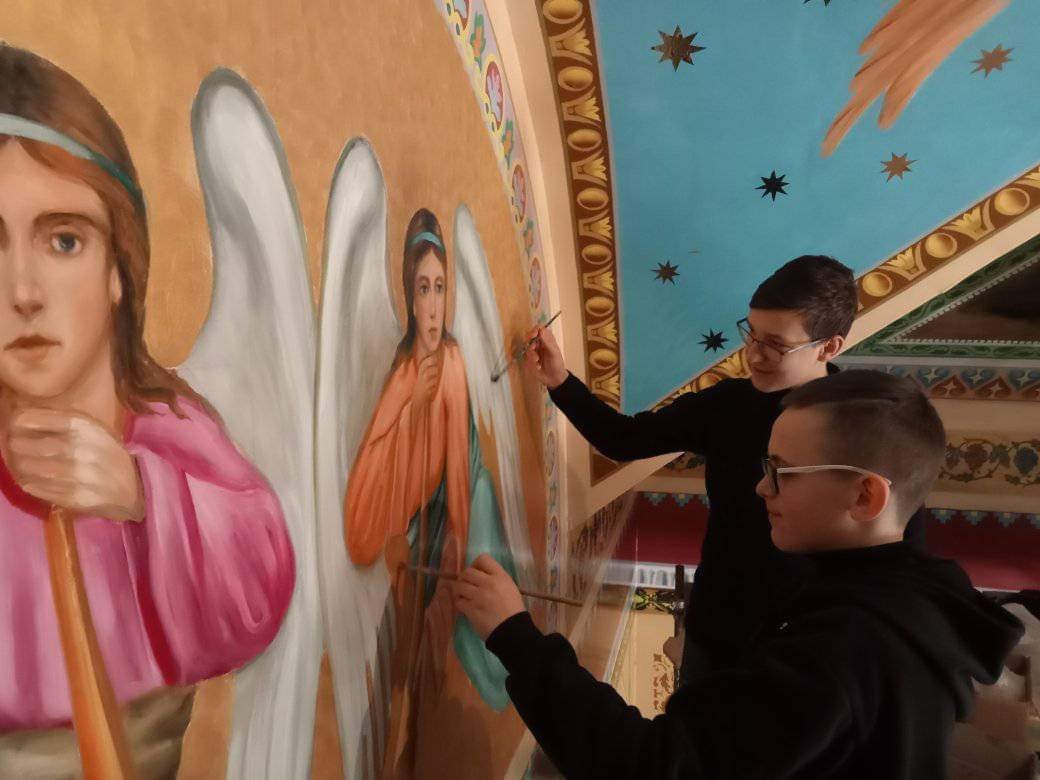 Вихованці недільної школи парафії Воздвиження хреста Господнього, що в цьому селі Ківерецького деканату, долучилися до розпису своєї церкви.