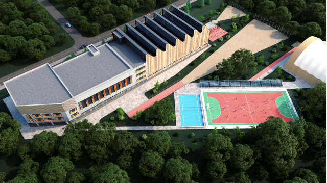 На місці корпусу № 2 мають облаштувати спортивно-тренувальний центр із закритим переходом до корпусу № 1. Проект передбачає закритий зал для ігрових видів спорту з повним набором приміщень для функціонального використання (душові, тренерські тощо).