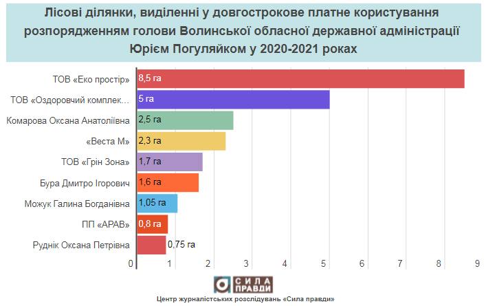 У 2021 році Юрій Погуляйко розщедрився і почав активніше роздавати ліси. Минулого року найбільш привабливими для бізнесу були ділянки на території ДП «Волинський селекційно-насіннєвий центр» та ДП «Ківерцівське лісове господарство».