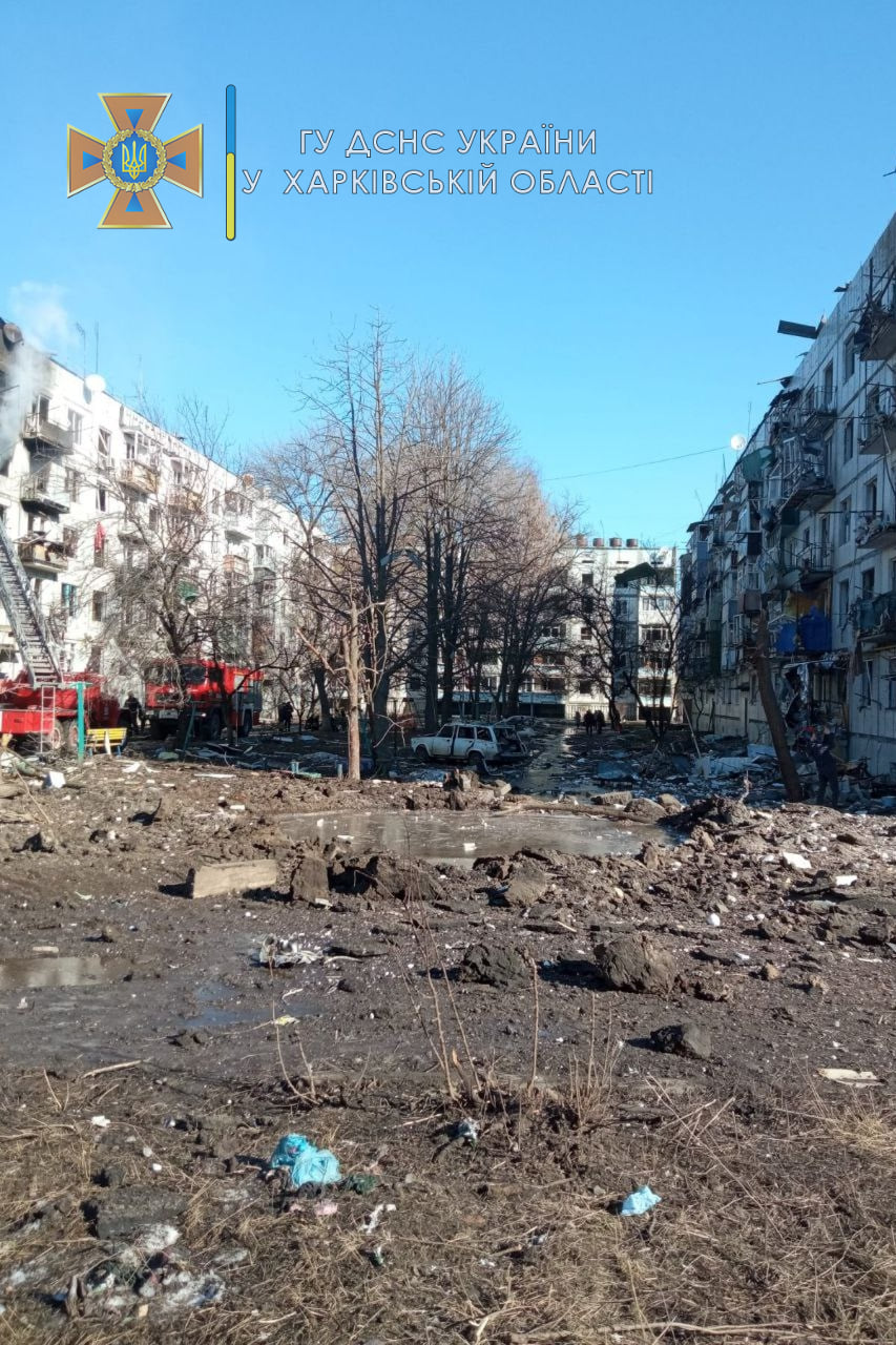 У четвер, 24 лютого, на номер «101» надійшло повідомлення про пожежу у житловому 5-поверховому будинку за адресою: м. Чугуїв, мікрорайон Авіатор, буд. №157. Вона виникла внаслідок ворожого обстрілу.
