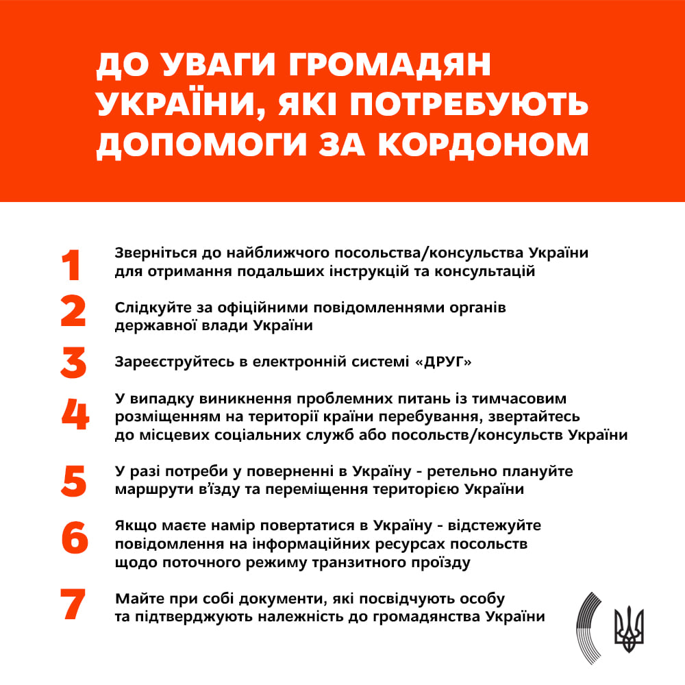 2. Слідкуйте за офіційними повідомленнями органів державної влади України та відповідного посольства/консульства України