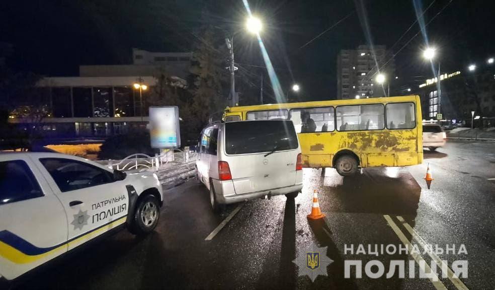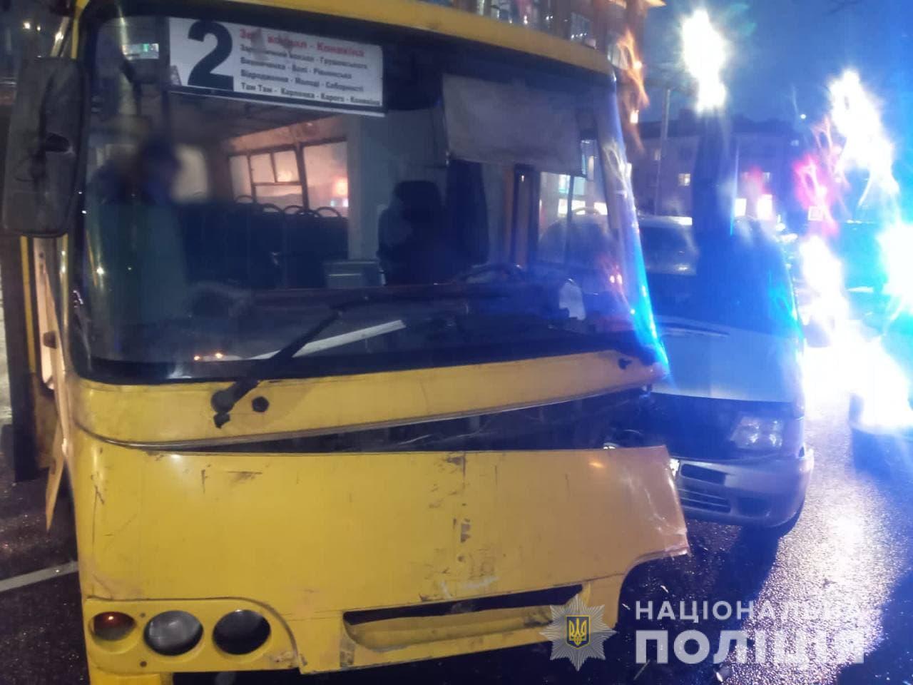 Поліцейські встановлюють обставини ДТП за участю маршрутного таксі та мікроавтобуса у центрі Луцька.