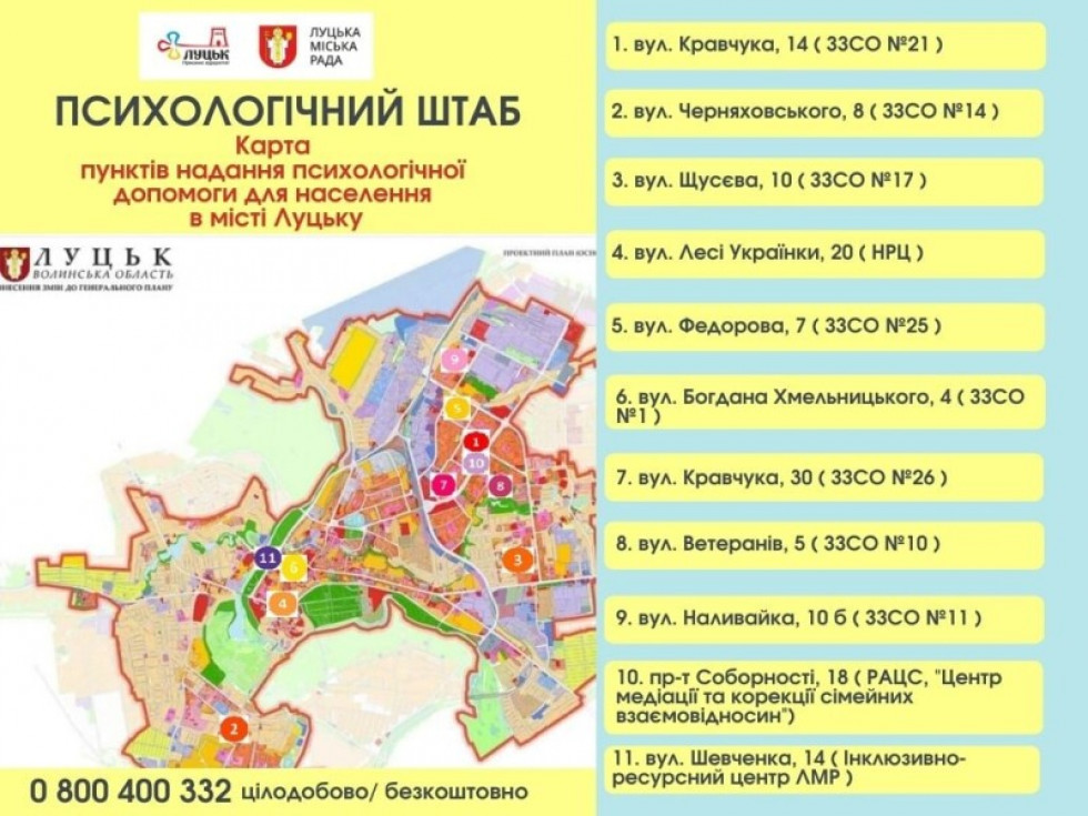 На базі управління соціальних служб для сім’ї, дітей та молоді Луцької міської ради працює «психологічний штаб». Тут надають екстрену та кваліфіковану психологічну допомогу населенню.