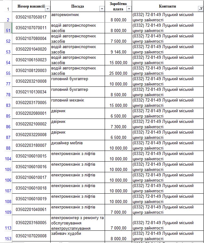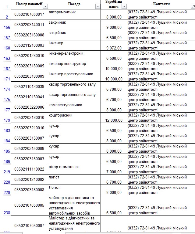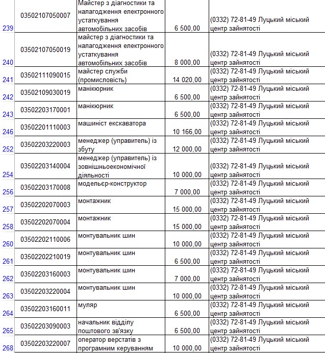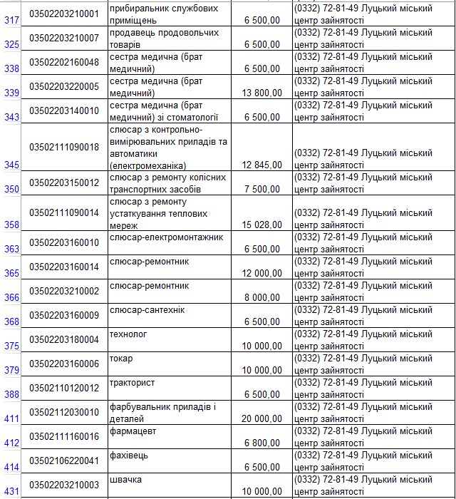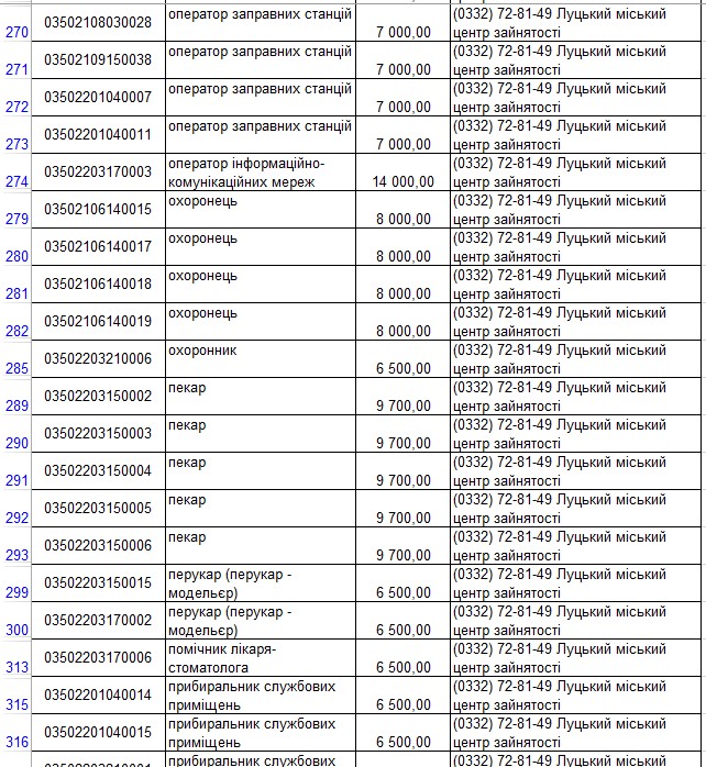Волинський обласний центр зайнятості надав ГІТу перелік актуальних вакансій у Луцьку.