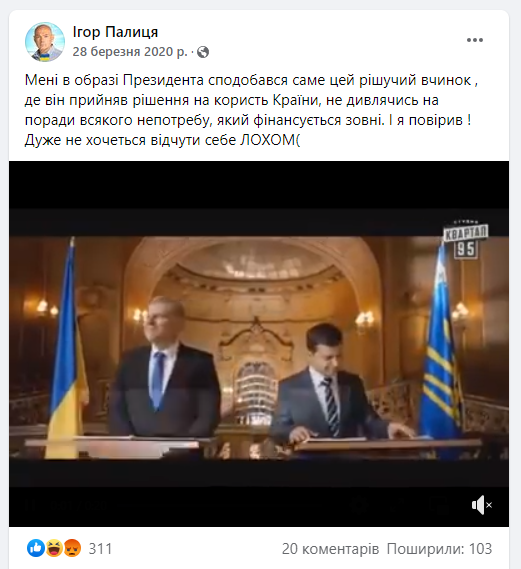 Р.S. Через день після цього виступу, в четвер, 31 березня, Ігор Палиця прибув до Луцька і засвітився на підконтрольному йому місцевому телеканалі й інтернет-ресурсі.