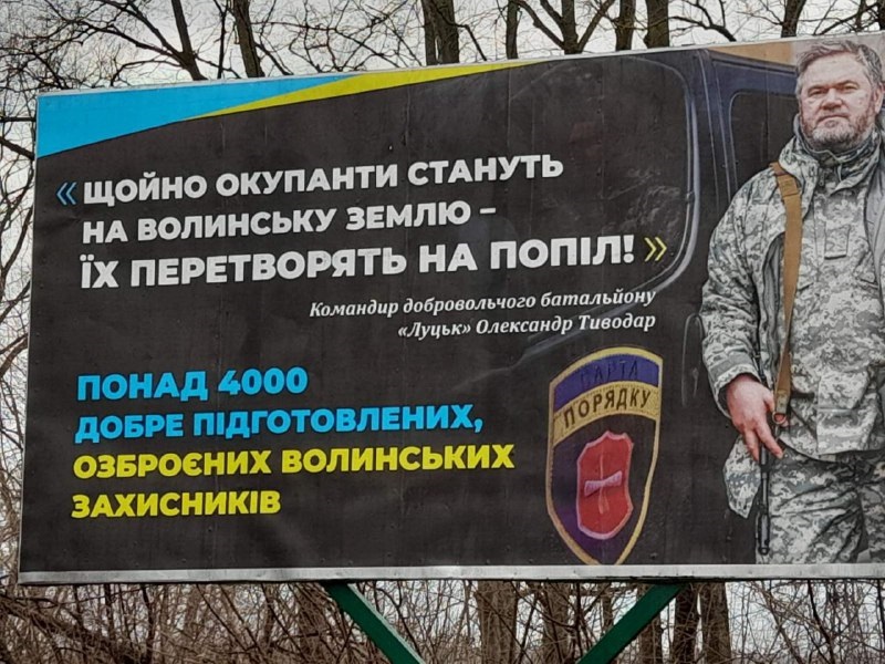 Хто не знає, на білборді – Олександр Тиводар – у мирному житті керівник воєнізованого формування «Варта порядку», такої собі приватної армії нардепа Ігоря Палиці.