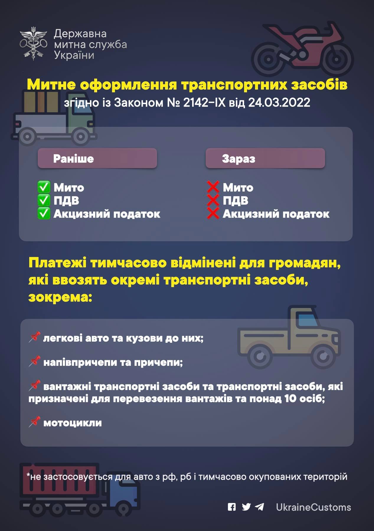 Станом на 11 квітня 2022 року волинські митники уже надали пільги, передбачені Законом № 2142-ІХ «Про внесення змін до Податкового кодексу України та інших законодавчих актів України щодо вдосконалення законодавства на період дії воєнного стану» для 20 транспортних засобів, які були ввезені фізичними особами-громадянами України після набуття чинності закону.