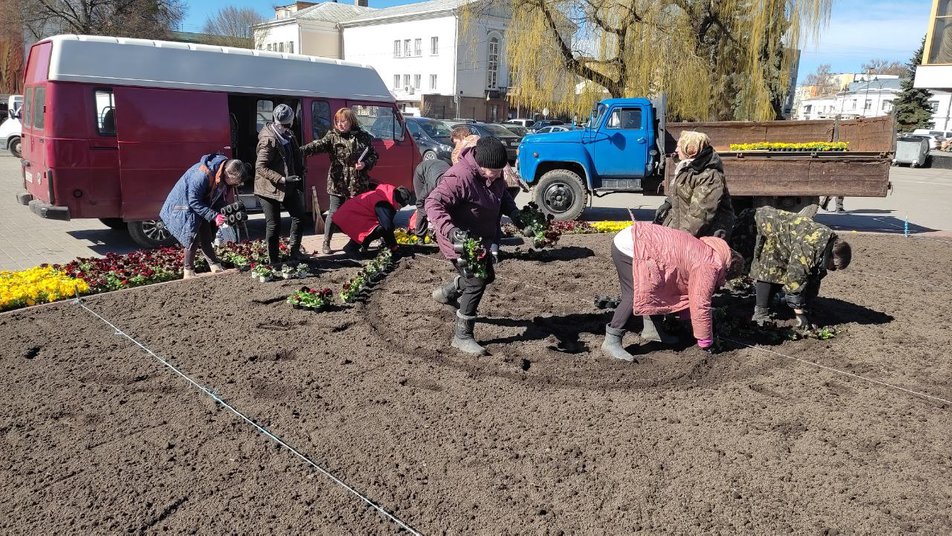 На кожній клумбі перед посадкою квітів комунальники спершу готують ґрунт і роблять розмітку. Майстриня підприємства Алла Можелюк каже: на одній з клумб планують створити композиція, яка створить з квітів напис «Я люблю Україну».