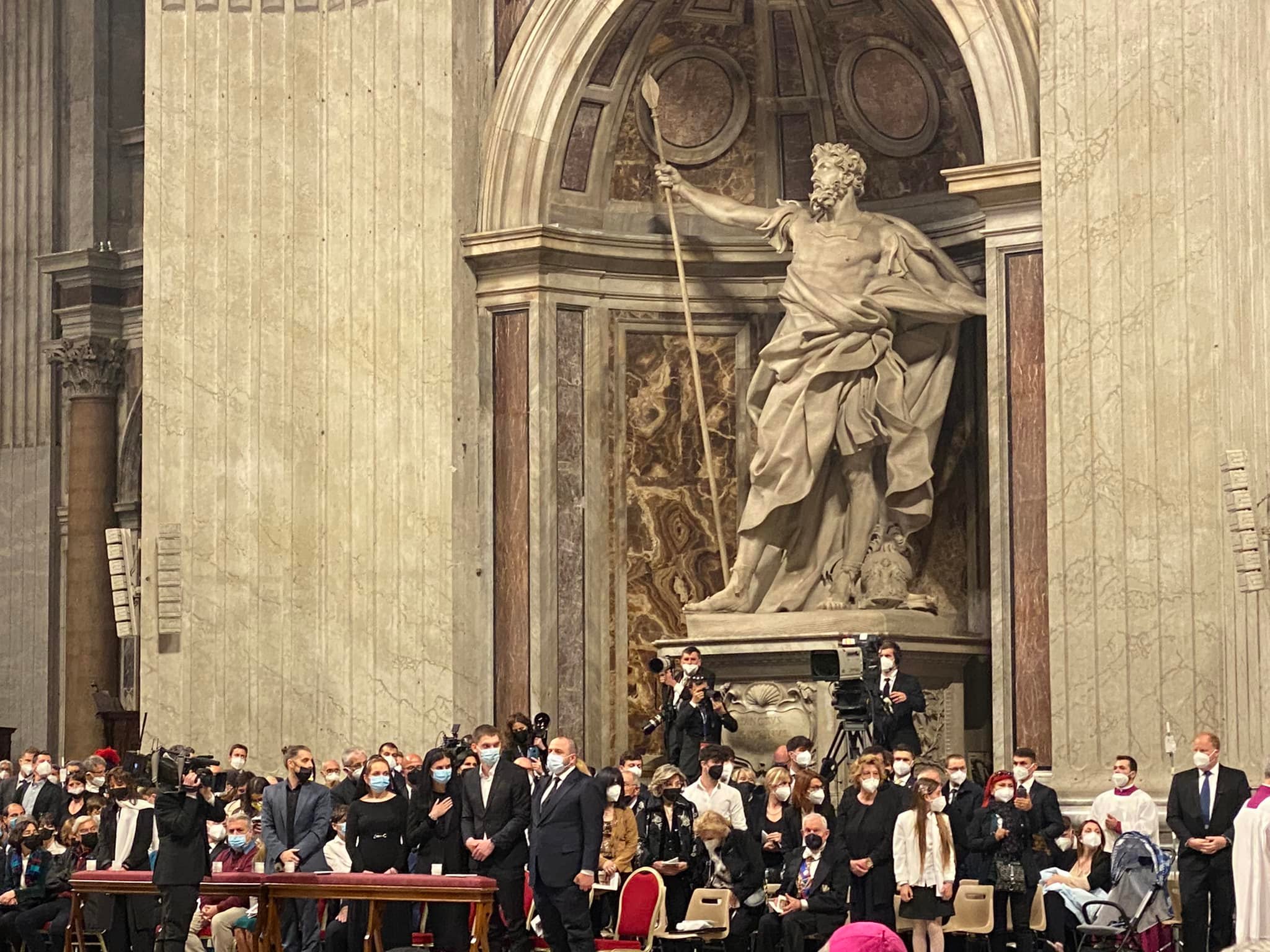 Італійський кардинал Джованні Баттіста Ре замінив папу як головного священнослужителя на службі, в ході якої великодня процесія пройшла в майже повній темряві вгору центральним нефом найбільшого храму християнського світу.