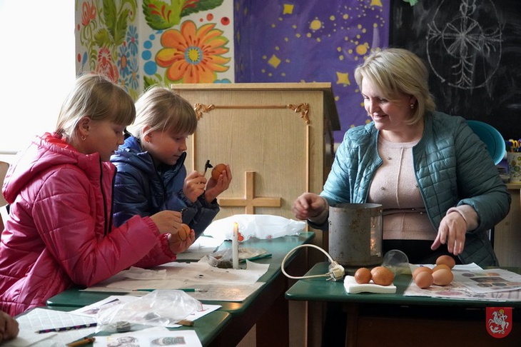 18 та 19 квітня такі майстер-класи провели і для учнів дитячої релігійної школи Собору Різдва Христового. Разом із наставницею Валентиною Залуніною діти з великим захопленням розписували та розфарбовували писанки для наших захисників. Кожна дитина мріяла про те, щоб її писанка стала оберегом у ці дні, нагадувала воїнам про їх домівку та піднімала настрій.