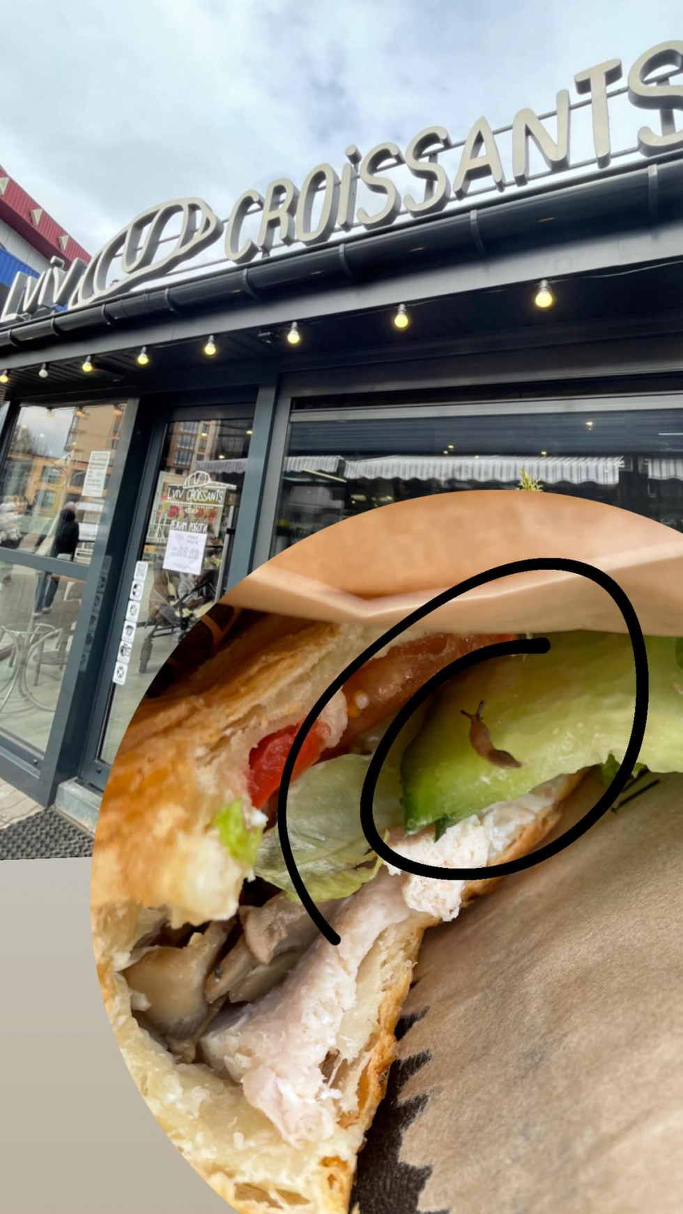 Лучанка Дарина Корнійчук придбала круасан «зі сюрпризом» – живим маленьким равликом – в закладі на Соборності, 11-л.