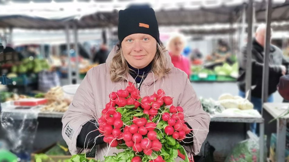 Продавчиня Ірина Савчук розповіла, приїхала з села Тарасове, продає городину. "Правильно, хай беруть, то ж воно треба, бо з нинішньою екологією..., дітям усе, в нас то некроплене, все в теплицях, діти допомагають", – каже жінка.