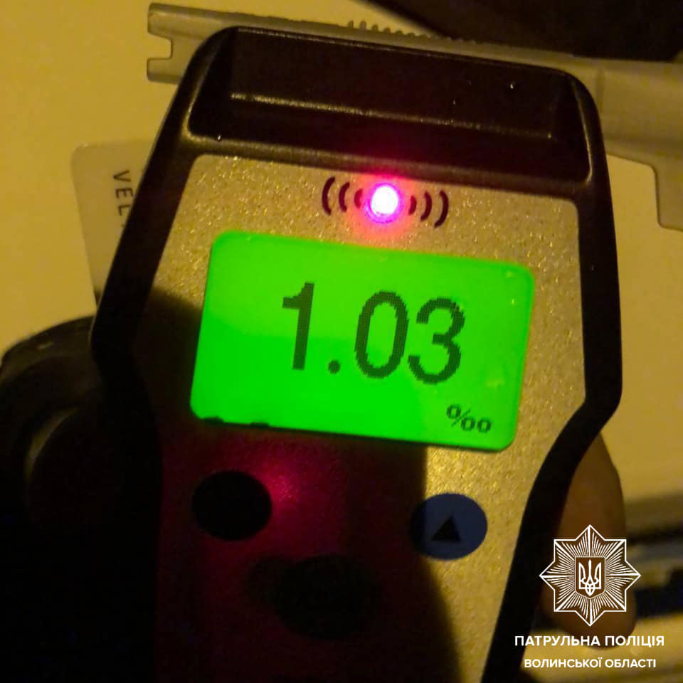 Огляд на визначення стану алкогольного сп’яніння на місці події показав результат у 1,45 проміле, що в 7 разів перевищує допустиму норму, – інформує патрульна поліція Волині.
