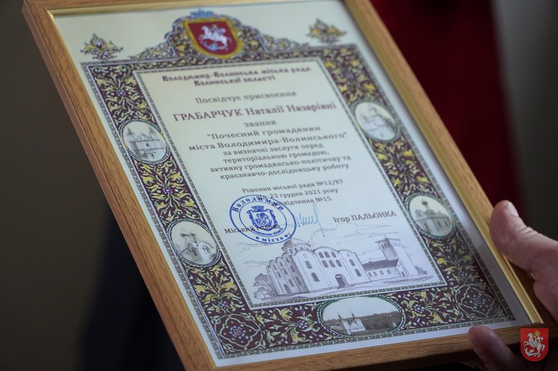 7 квітня Наталії Назарівні Грабарчук вручили офіційний документ, який посвідчує звання «Почесний громадянин міста Володимир».