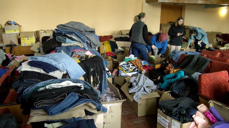 У координаційний центр за допомогою звернулася Світлана Яковлева, яка приїхала на Волинь з чотирма синами з Чернігова. Каже: прийшла за одягом, продуктами та дитячими іграшками.