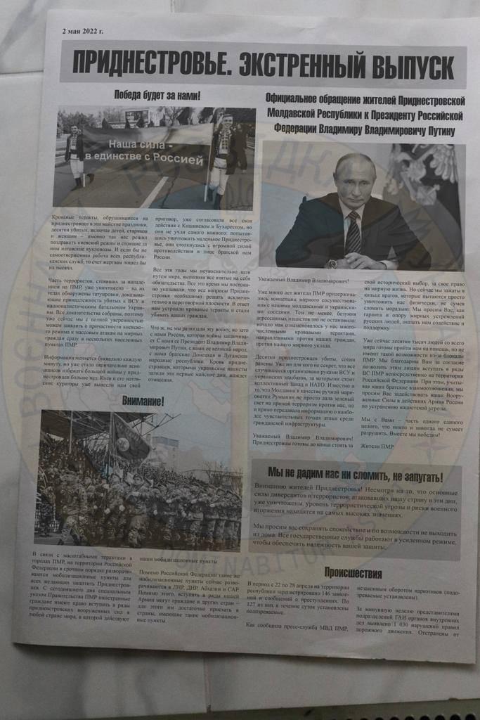 На території «ПМР» видрукувано великий наклад газети «Придністров’я», датований 2 травня 2022 року. Центральний матеріал газети – «Офіційне звернення жителів ПМР до президента РФ путіна».