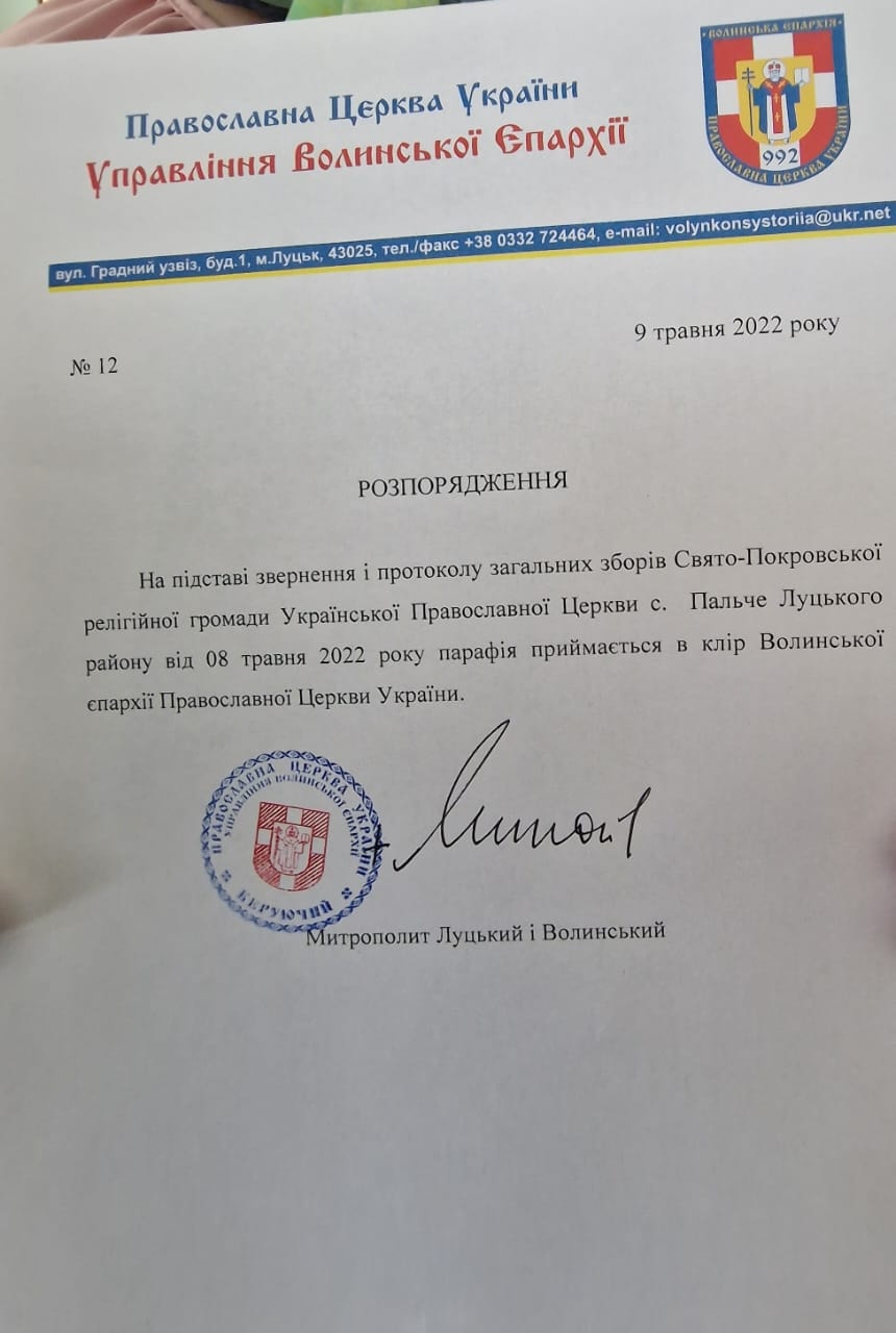 Парафіяни Свято-Покровської церкви села Пальче Луцького району шляхом голосування вирішили покинути УПЦ МП та перейшли до Православної церкви України.