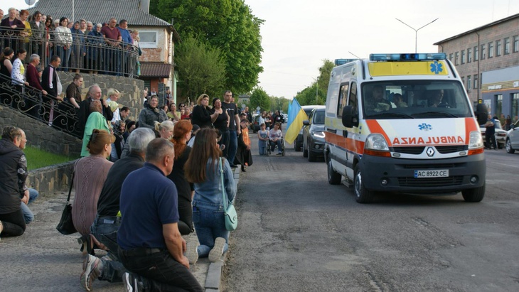 Зі сльозами й на колінах зустрічали у Рожищенській громаді тіло загиблого воїна Олександра Шевчука.