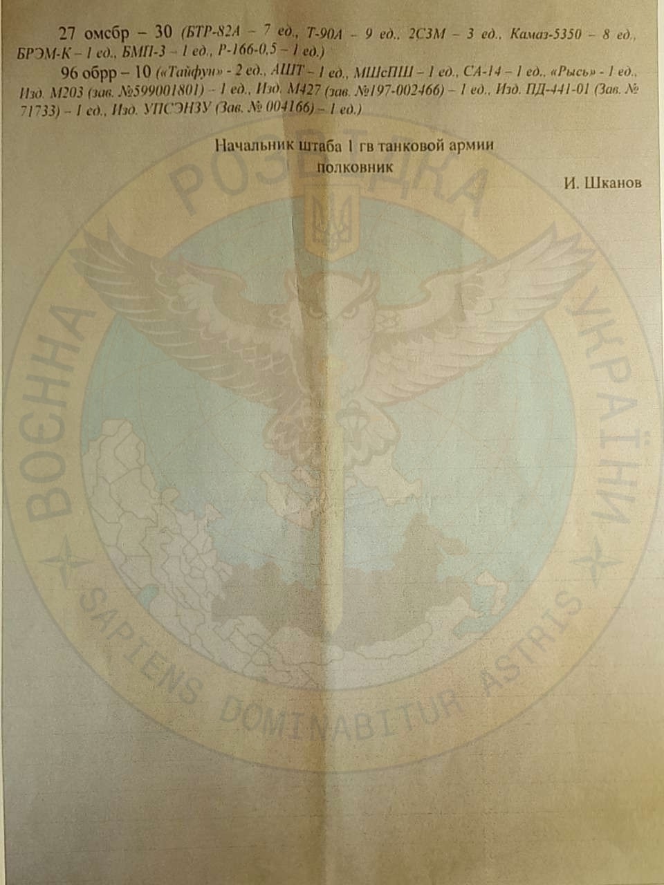 Воєнна розвідка України здобула документальні підтвердження втрат живої сили та техніки 1 танкової армії збройних сил країни-окупанта.