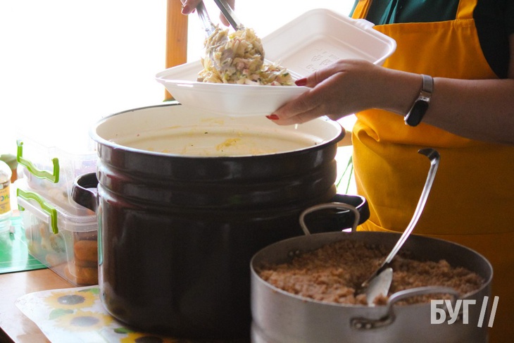 Як розповіли БУГу у «Благодійній їдальні», кухарі готують близько 500 обідів на день. Для нужденних та гостів міста, які покинули свої домівки з найнеобхіднішими речами, також діє пункт одягу.