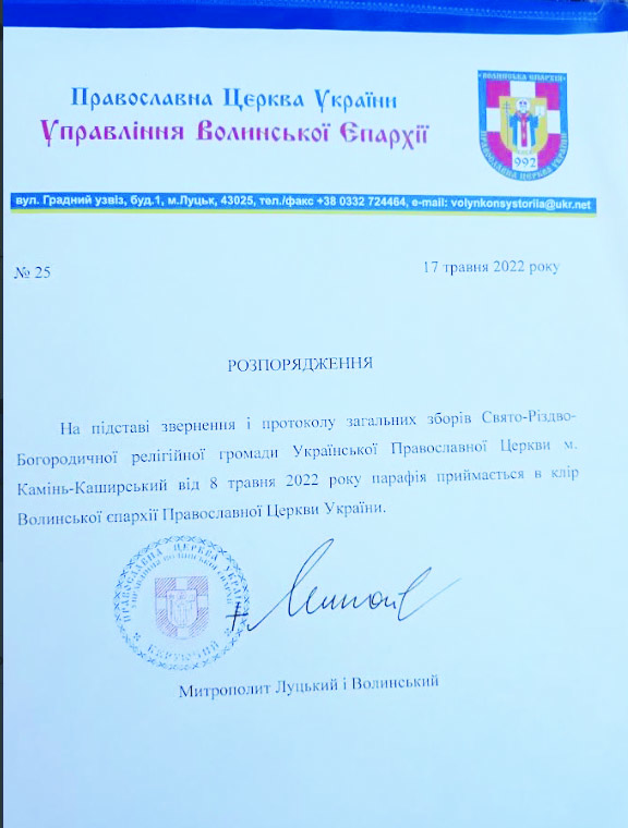 Днями митрополит Луцький та Волинський Михаїл підписав розпорядження щодо прийняття парафії у клір Волинської єпархії ПЦУ. Тому передувало звернення членів громади, які своїми голосами підтримали історичне рішення розірвати будь-які духовні стосунки з московським патріархатом.
