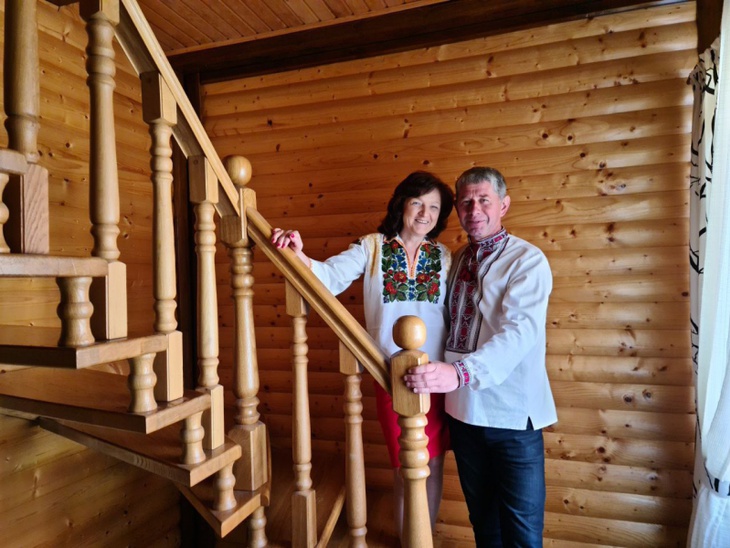 Оселя Абрамовичів нагадує типовий дім на Франківщині – дерев'яні стіни, стеля, меблі, світильники. На стінах – картини та панно із карпатськими мотивами. Господиня жартує, що оселя на Волині нагадує карпатську, а на Франківщині – волинську. Нині там мешкають донька із зятем, у якого, до речі, 15 вишиванок. Він дуже любить традиційний одяг і щонеділі одягає вишиту сорочку до храму, тож теща подбала про їх різноманіття.
