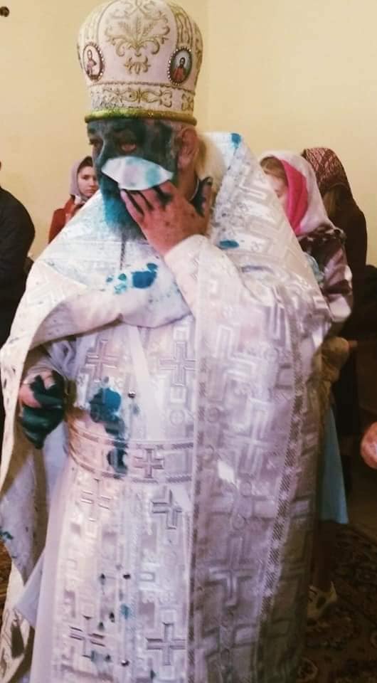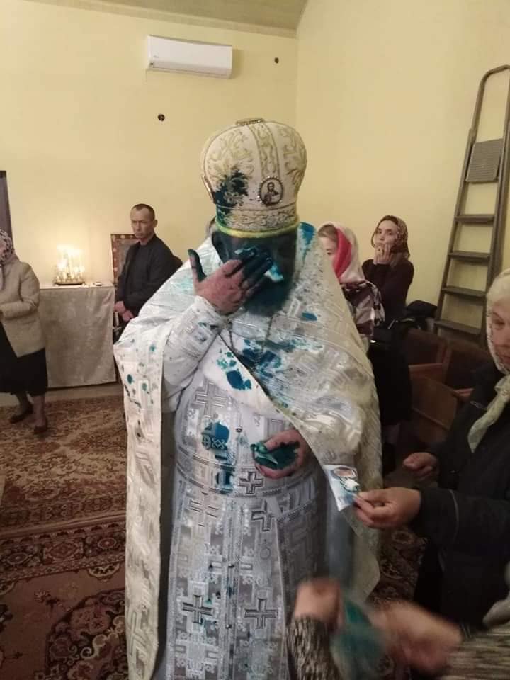 У місті Стрий Львівської області священника московського патріархату небайдужі активісти, яким є різниця, яка Церква, облили зеленкою.