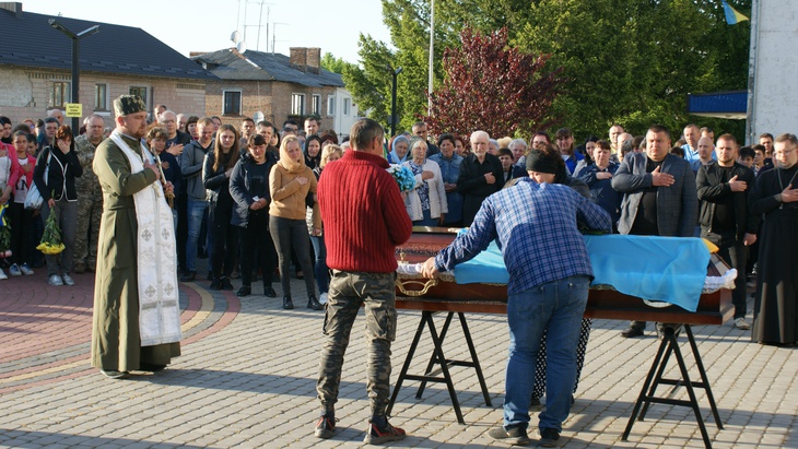 Похоронну процесію на площі Незалежності зустрічали сотні містян у понеділок, 23 травня. Символічно у День Героїв. Домовину принесли до пам'ятного знаку «Борцям за волю та незалежність України», де відбулася громадська панахида, - йдеться на сайті Рожищенської міської ради.