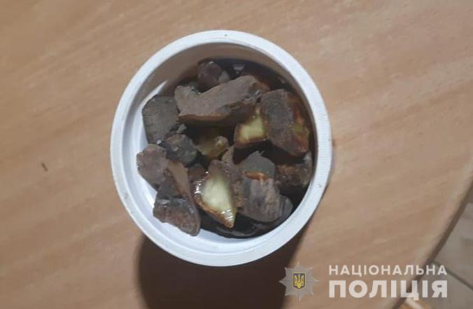 Під час кількох санкціонованих обшуків правоохоронці вилучили у фігурантів понад 100 кг бурштину у сировині та декоративних елементах на понад 120 тис. грн.