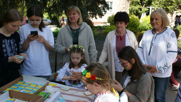 Також для юних мешканців громади працівники бібліотек організували цікаве дозвілля: одні вирізували ангеляток, інші – розмальовували синьо-жовтими кольорами печиво, кошти від продажу якого також передали для військових ЗСУ.