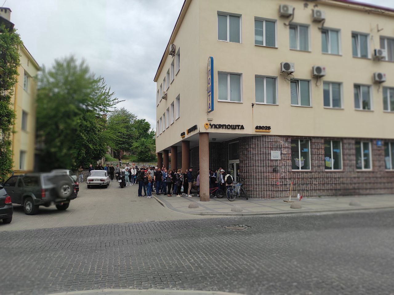 У Луцьку в п'ятницю, 27 травня, біля відділення поштового зв’язку №25 на вулиці Кривий Вал, 19 вишикувалася черга охочих придбати марку «Русскій воєнний корабль… Всьо!».
